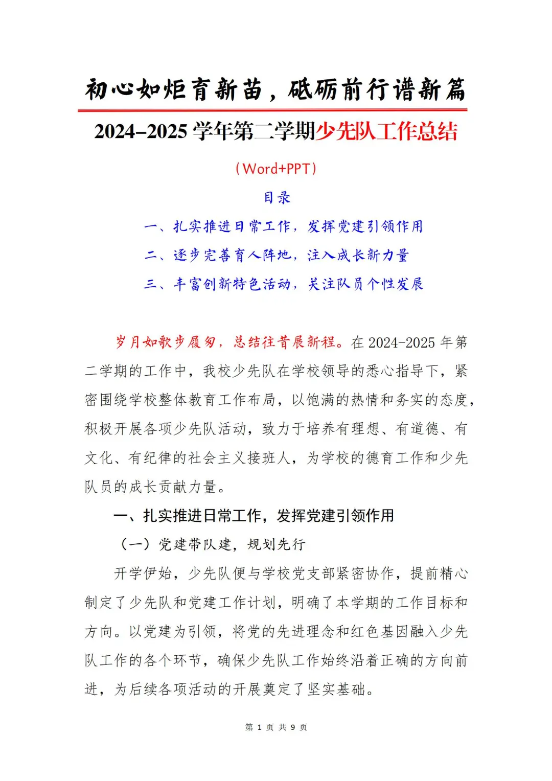 1001_2025年春季少先队工作总结文稿+PPT(初心如炬育新苗,砥砺前行谱新篇)