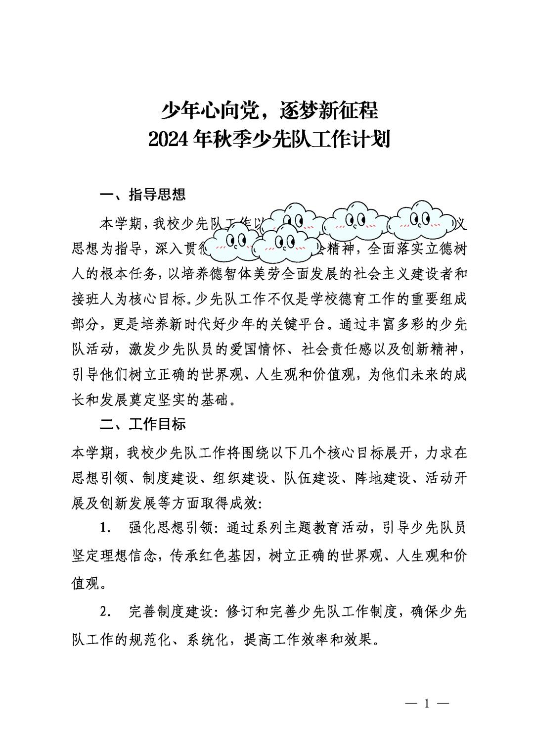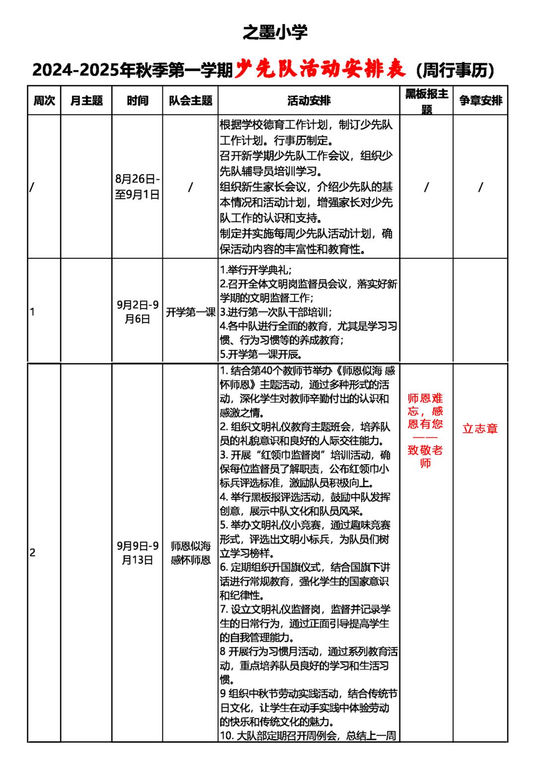 2024年秋季 少先队工作安排表 少先队行事历她来啦
