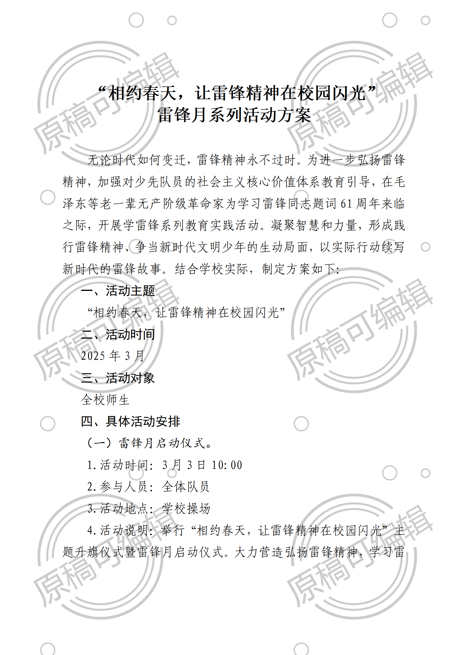 2025年雷锋月系列活动材料 我宣布:即将进入充实的三月份 就如表上所述