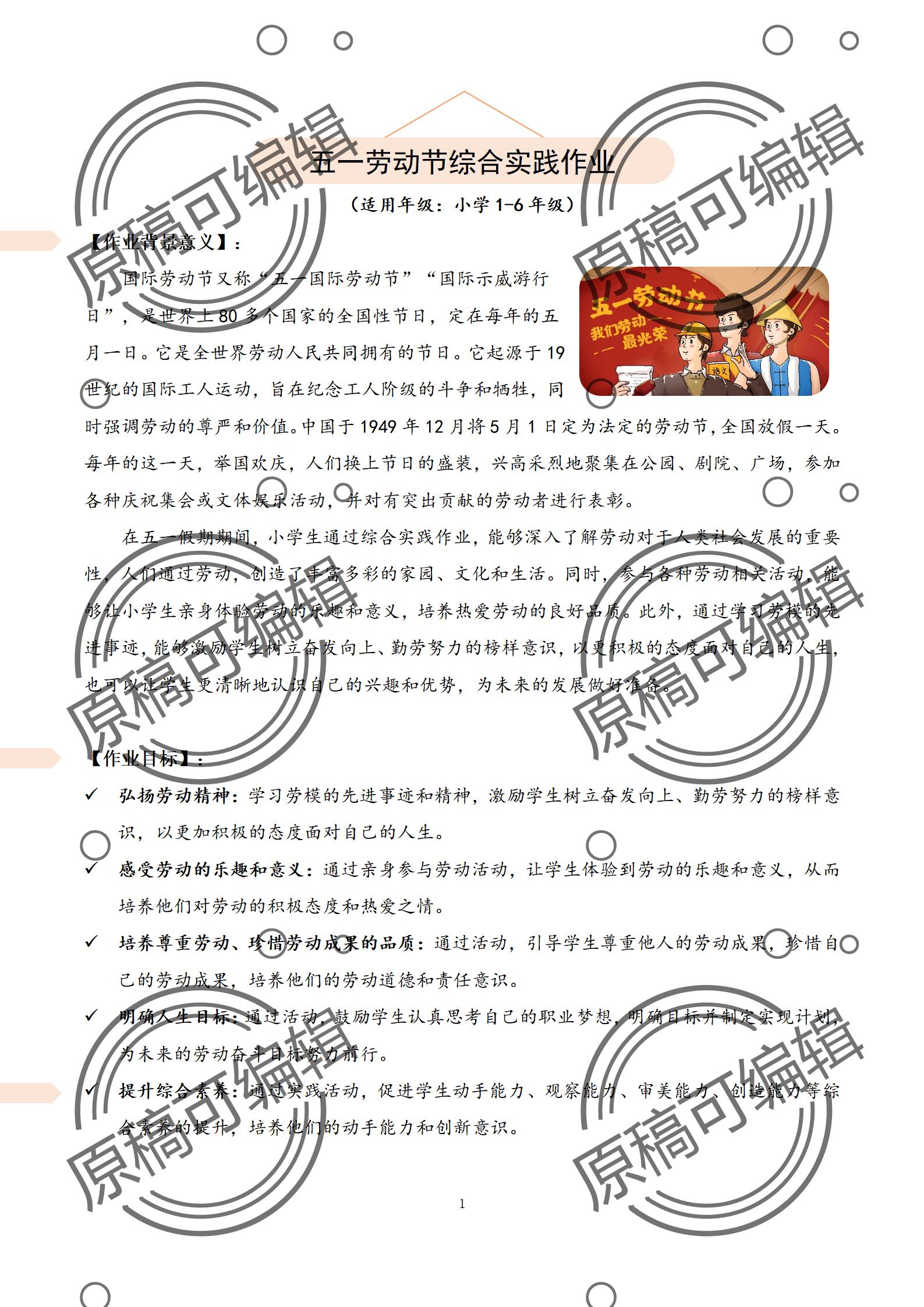 五一劳动节综合实践作业设计 劳动节特色作业单
