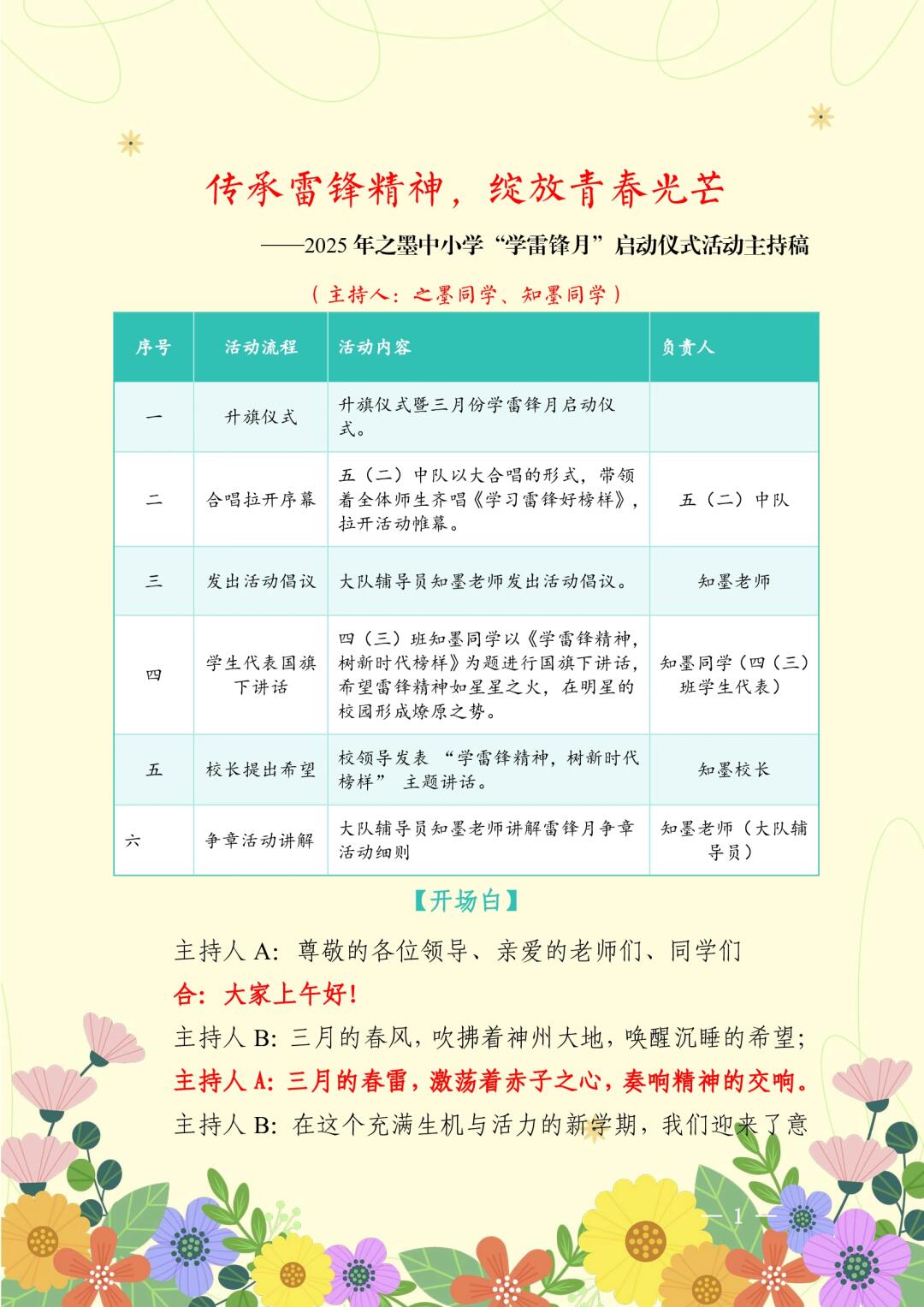 2025年雷锋月活动启动仪式主持稿 一份有灵魂的主持稿能让雷锋活动更加出彩