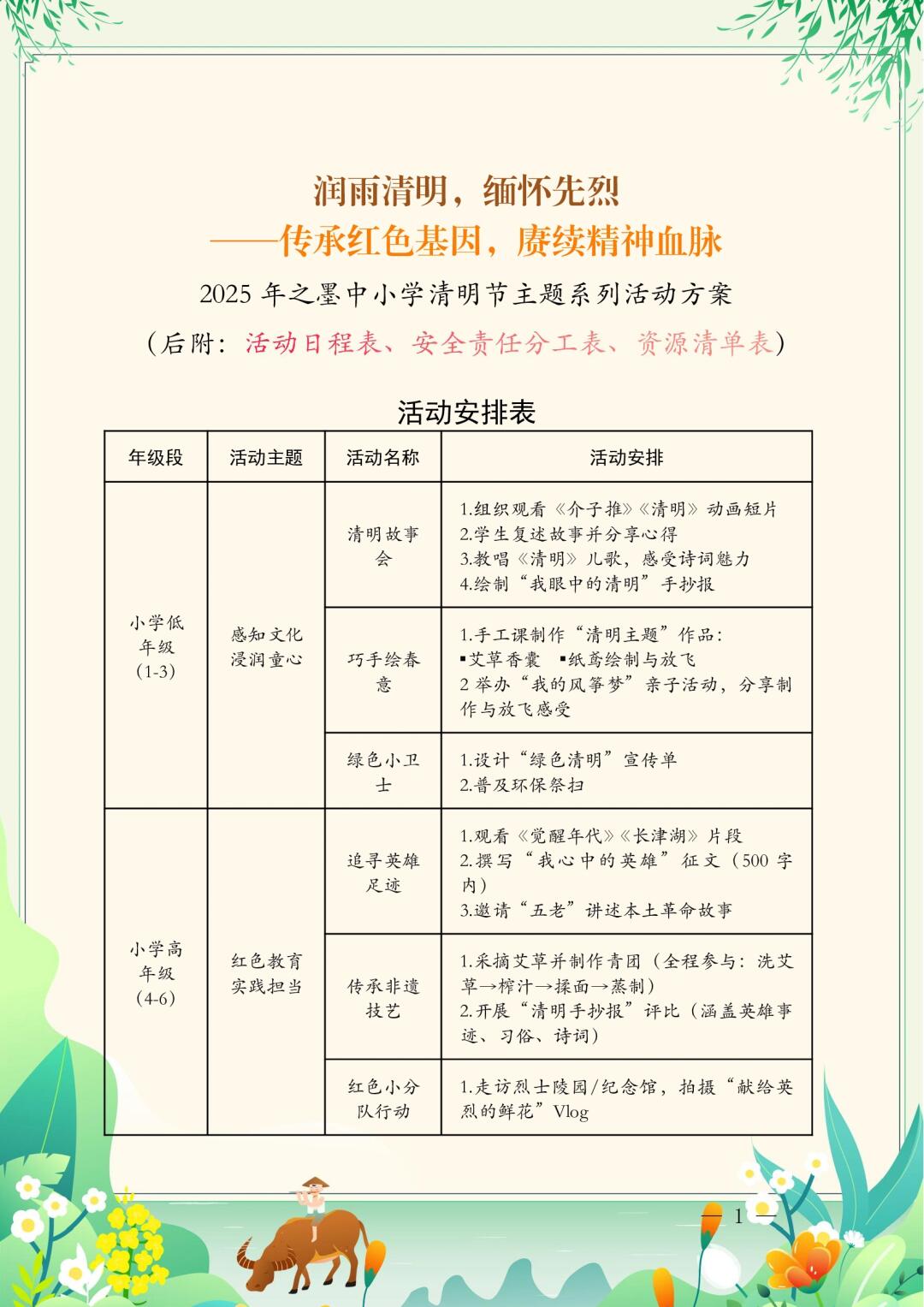 2025年清明节系列主题活动方案一张表带你走进清明节系列活动