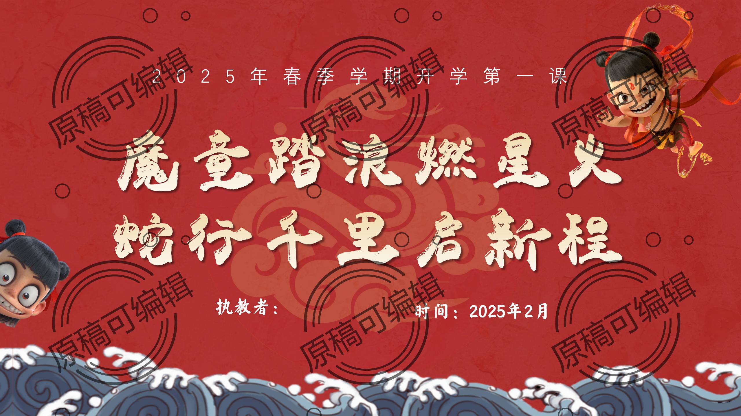 904 魔童踏浪燃星火 蛇行千里启新程 2025春季蛇年开学第一课PPT