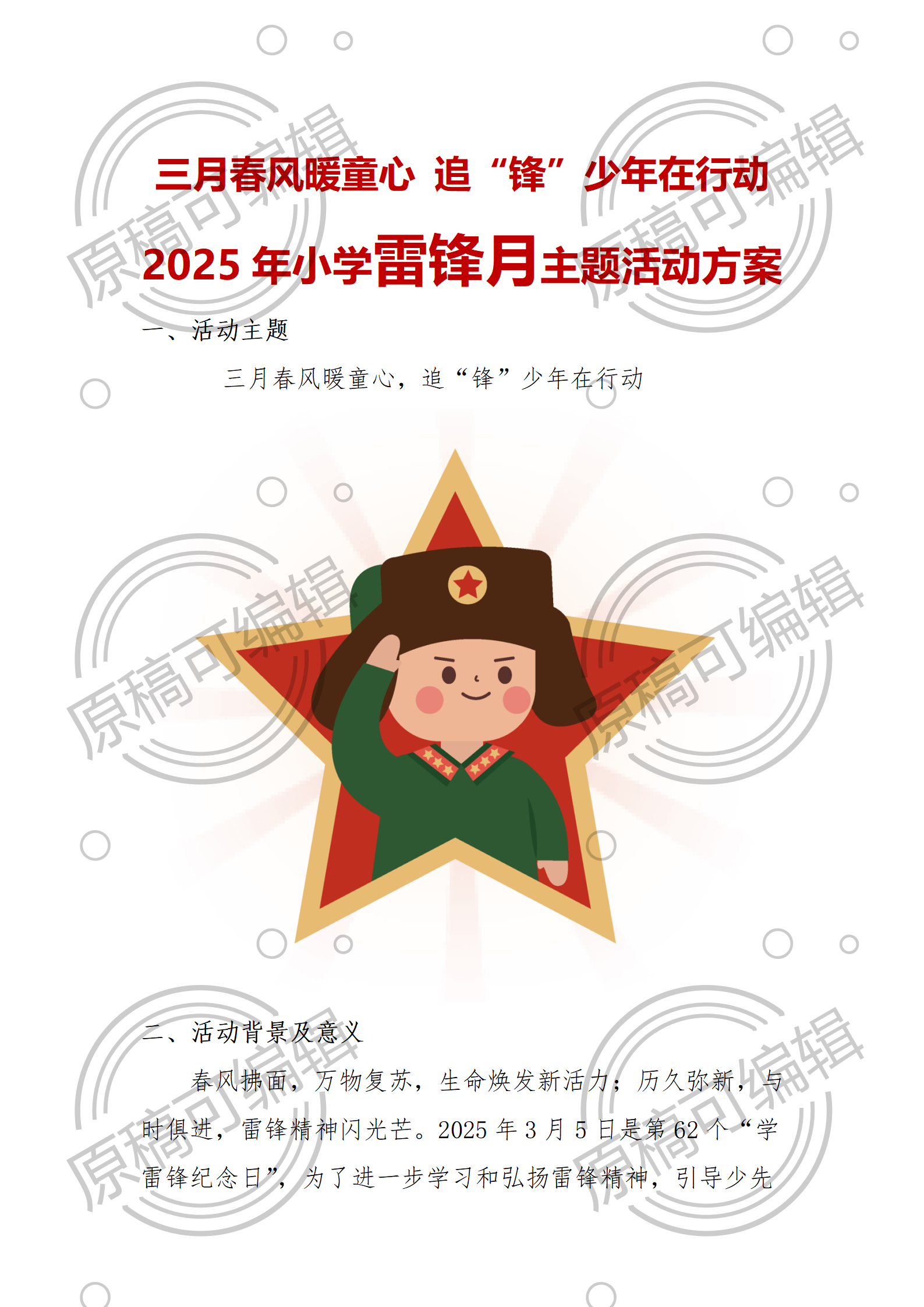 2025年雷锋月活动 三月春风暖童心 追“锋”少年在行动雷锋月主题活动方案