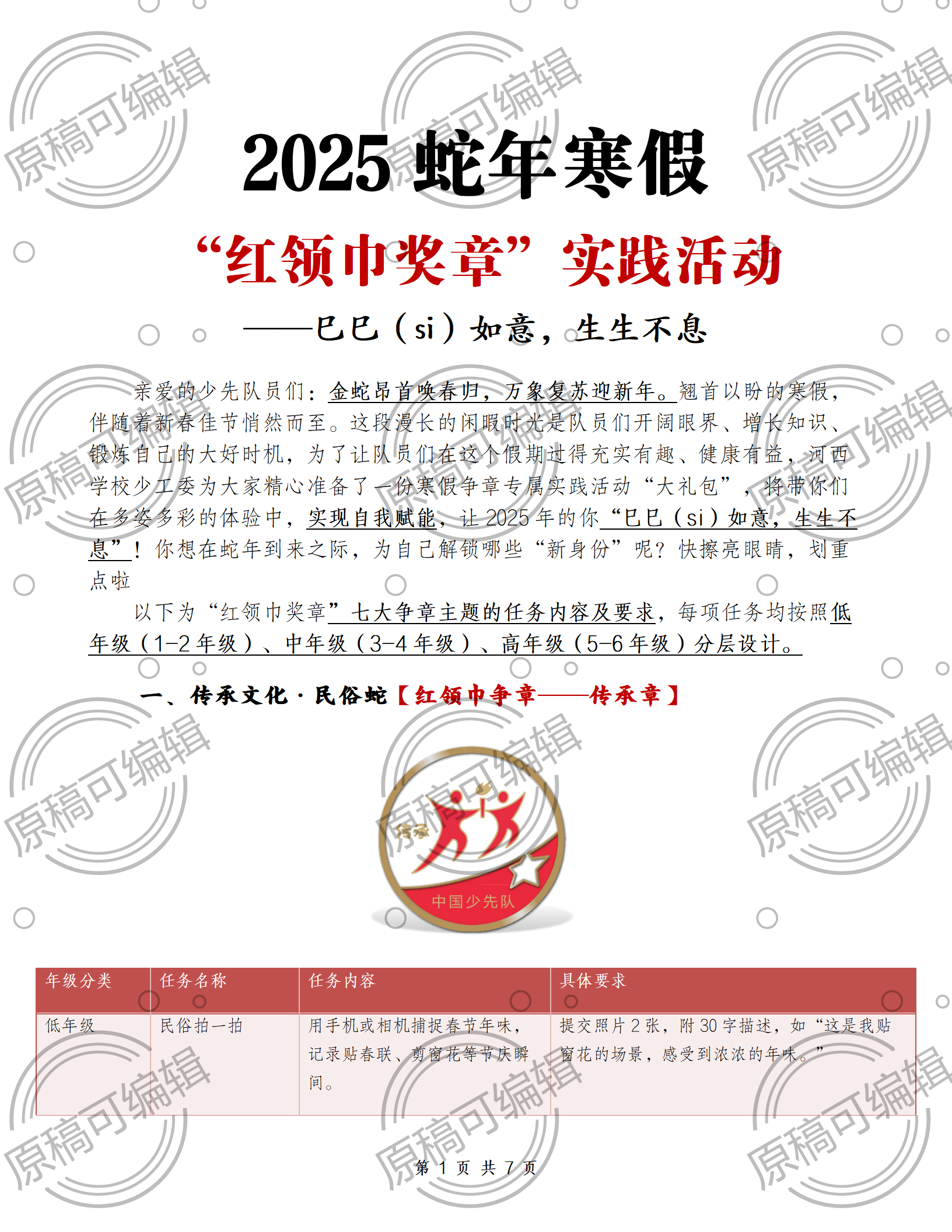 23 巳巳(si)如意,生生不息 2025年蛇年寒假红领巾奖章活动方案