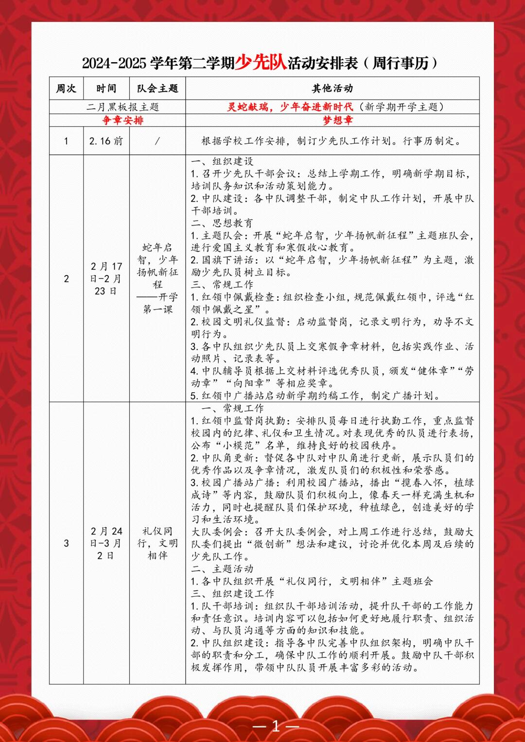 仅此一份——252025年春季少先队工作安排表(少先队行事历)
