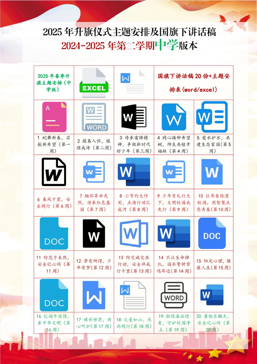 隔壁辅导员追着要的2025年春季升旗主题安排
