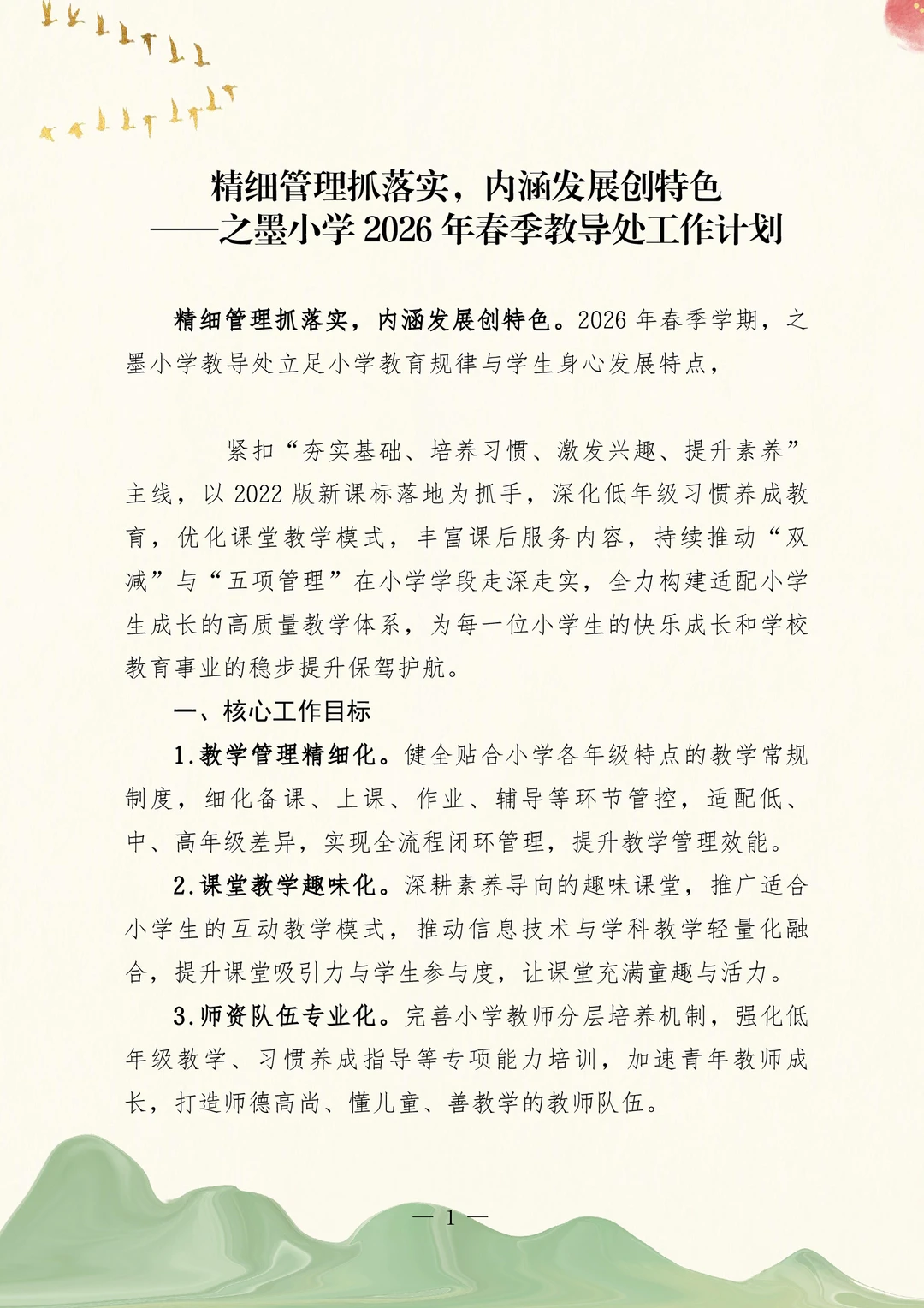 8 小学2026年春季教导处工作计划——精细管理抓落实,内涵发展创特色