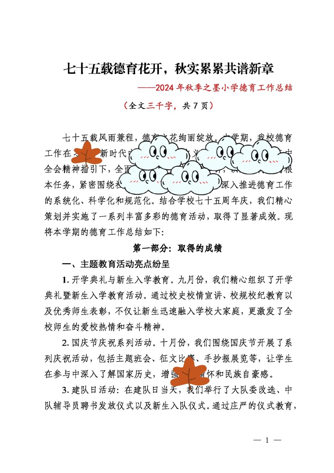 101 2024-2025年第一学期学校德育工作总结(回首来时星满路 精进臻善向未来)
