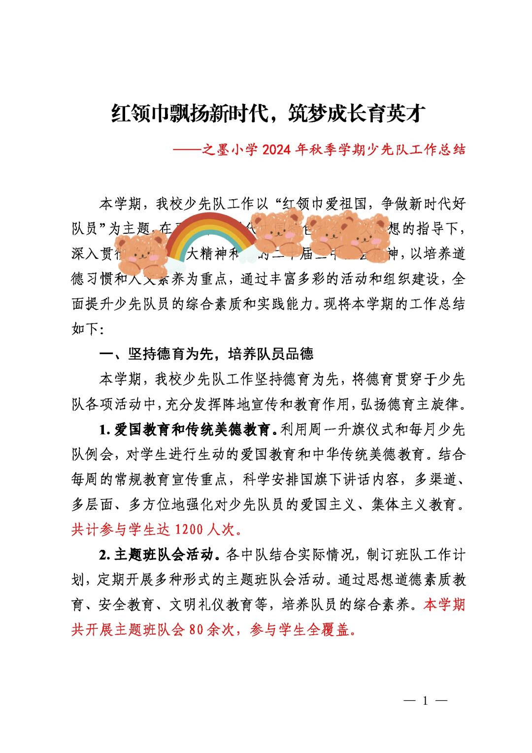109 2024-2025年第一学期少先队工作总结(奏响成长号角 点亮领巾梦想)
