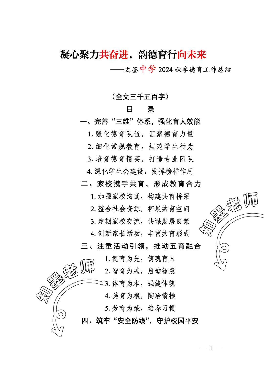 是时候交一份满意的德育工作总结了 2024年秋季中学德育工作总结
