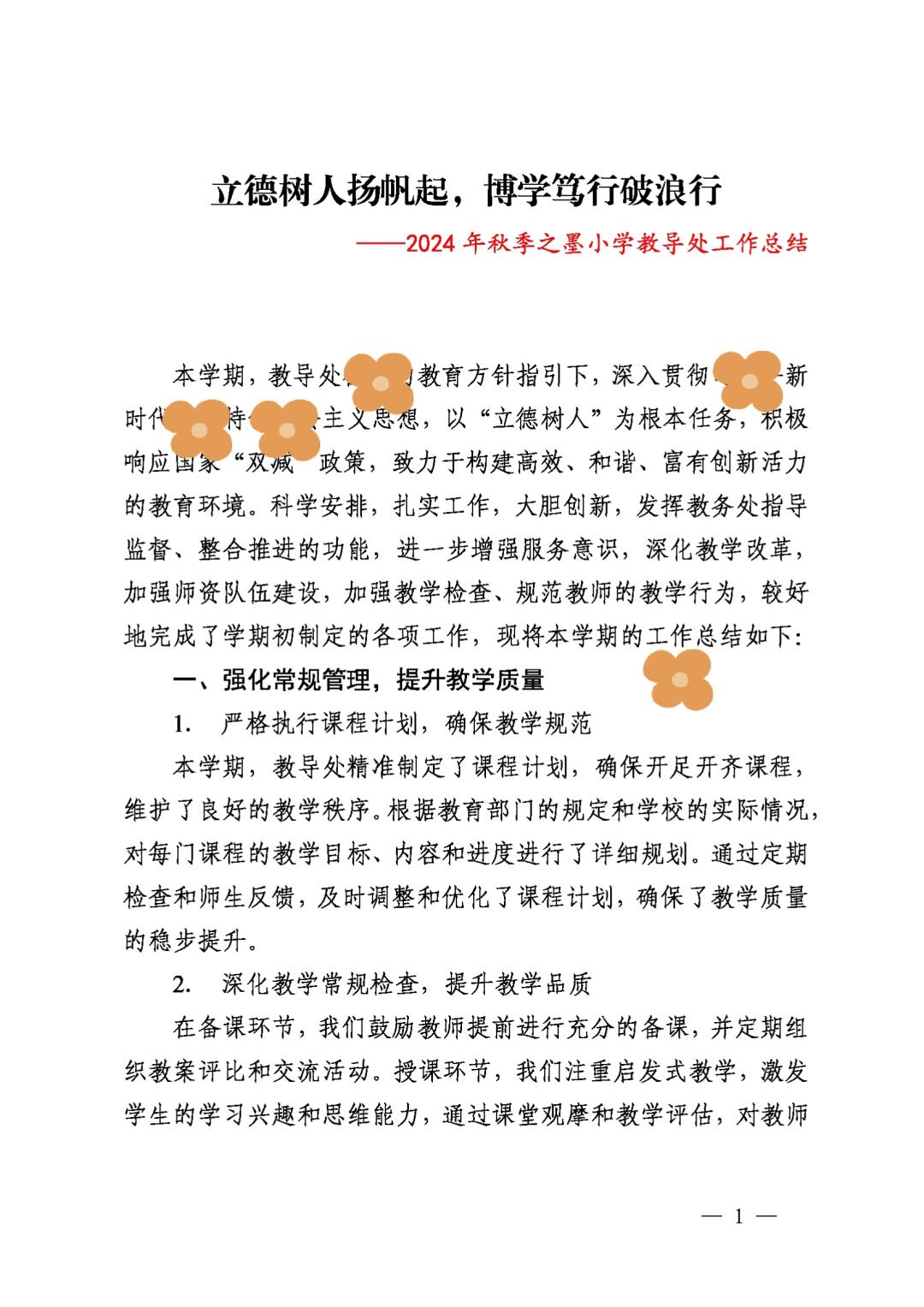 2024年秋季第一学期教务处工作总结 教导处工作总结