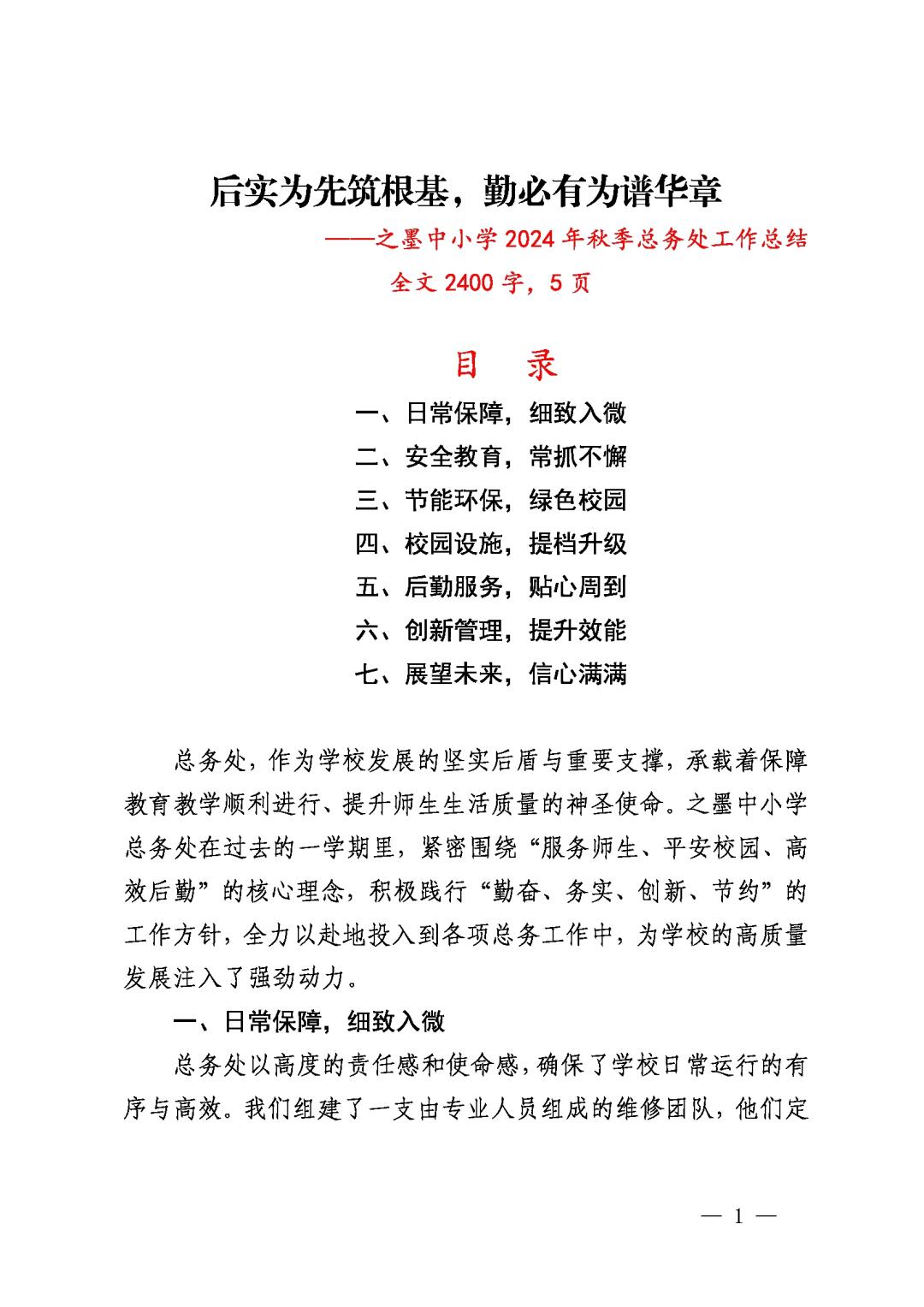 学校工作总结 2024年秋季学校整体工作总结