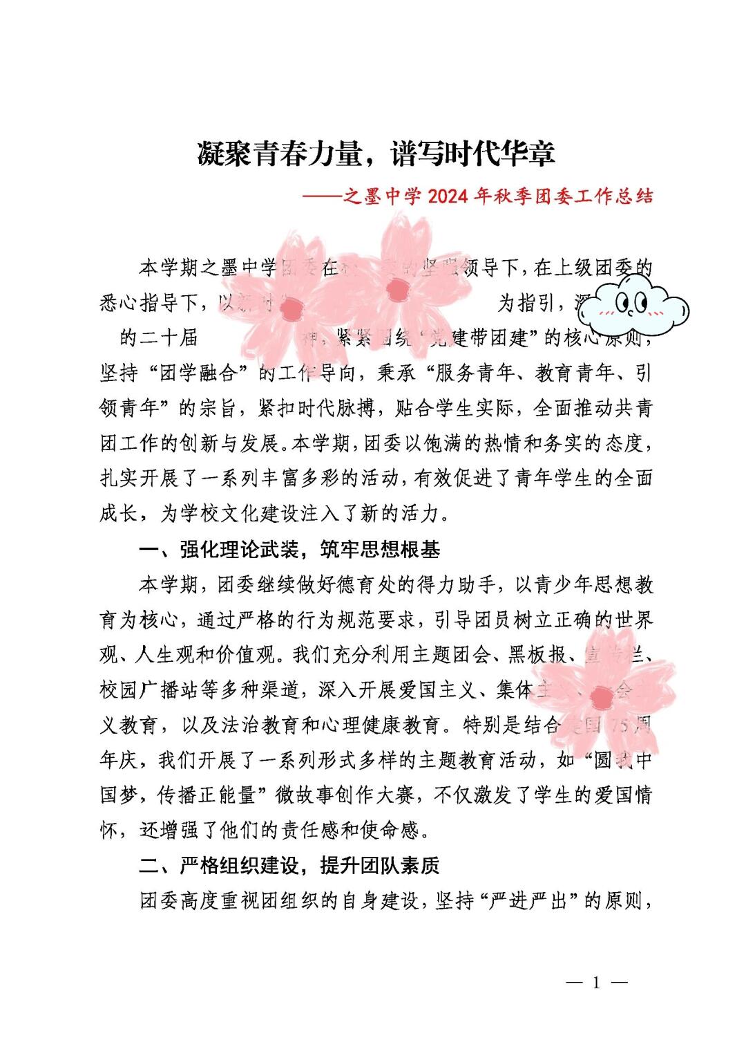 2024-2025学年第一学期团委工作总结就它了