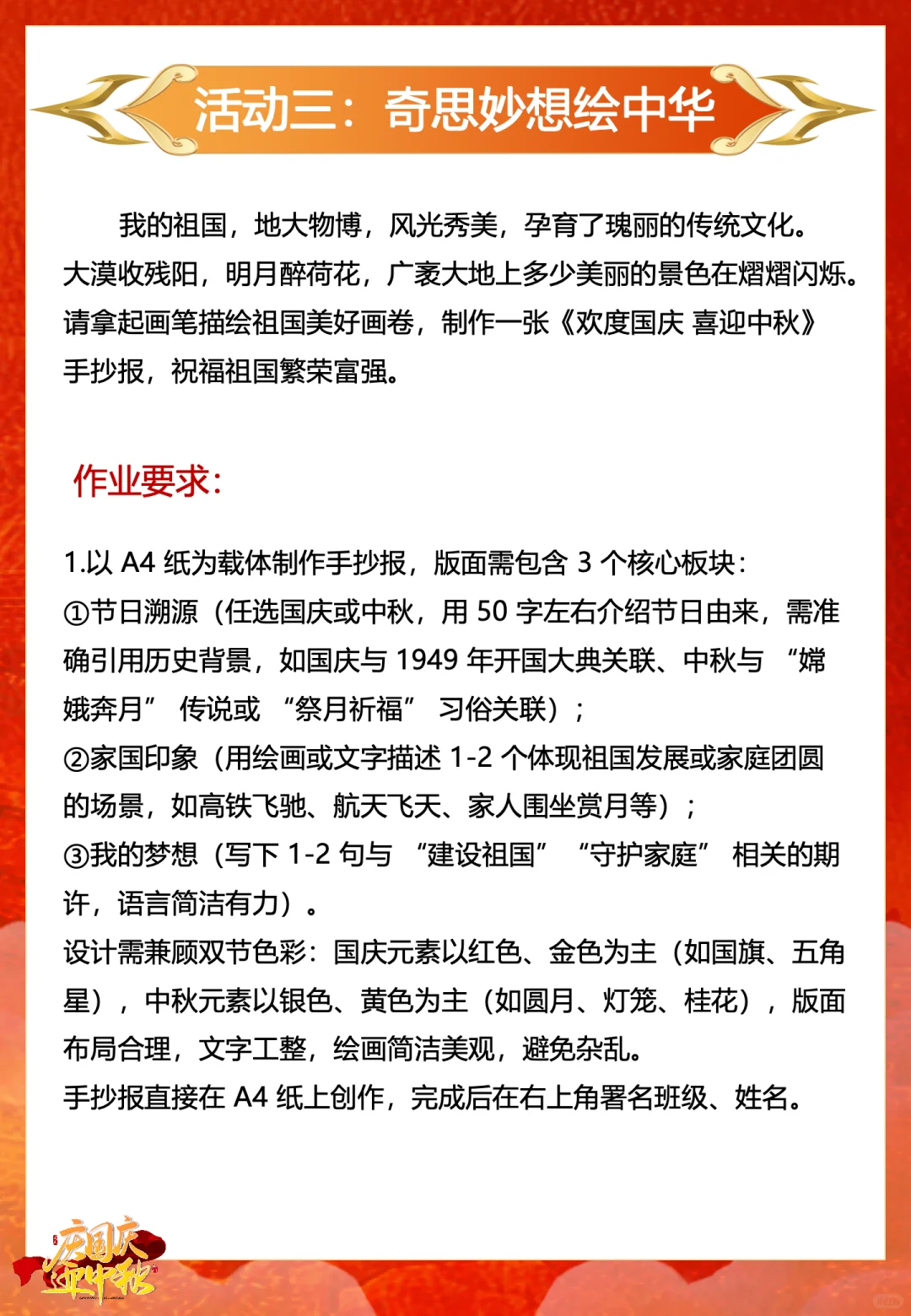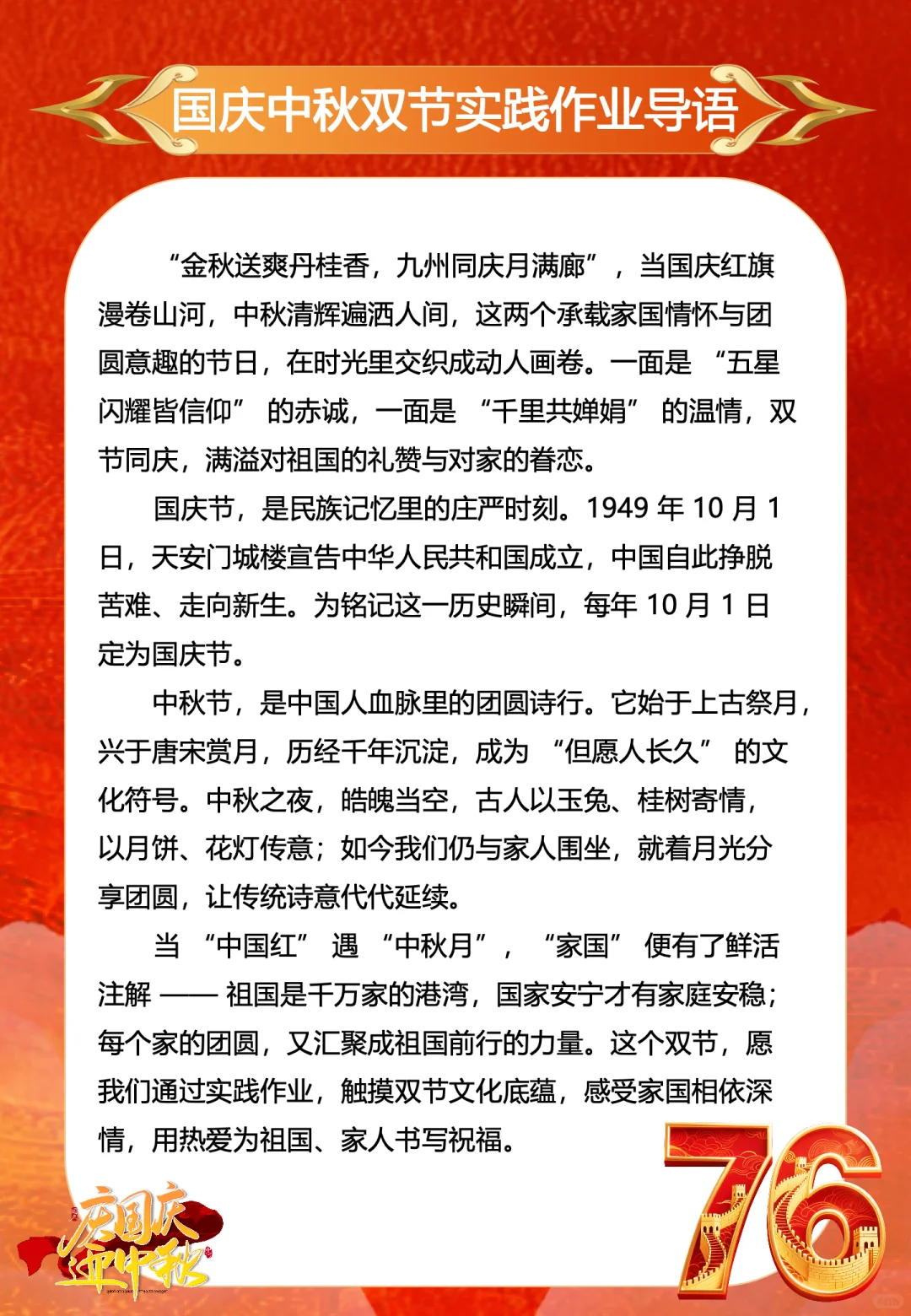 月满映中秋·童心迎国庆——2025国庆中秋假期德育实践作业(可编辑)