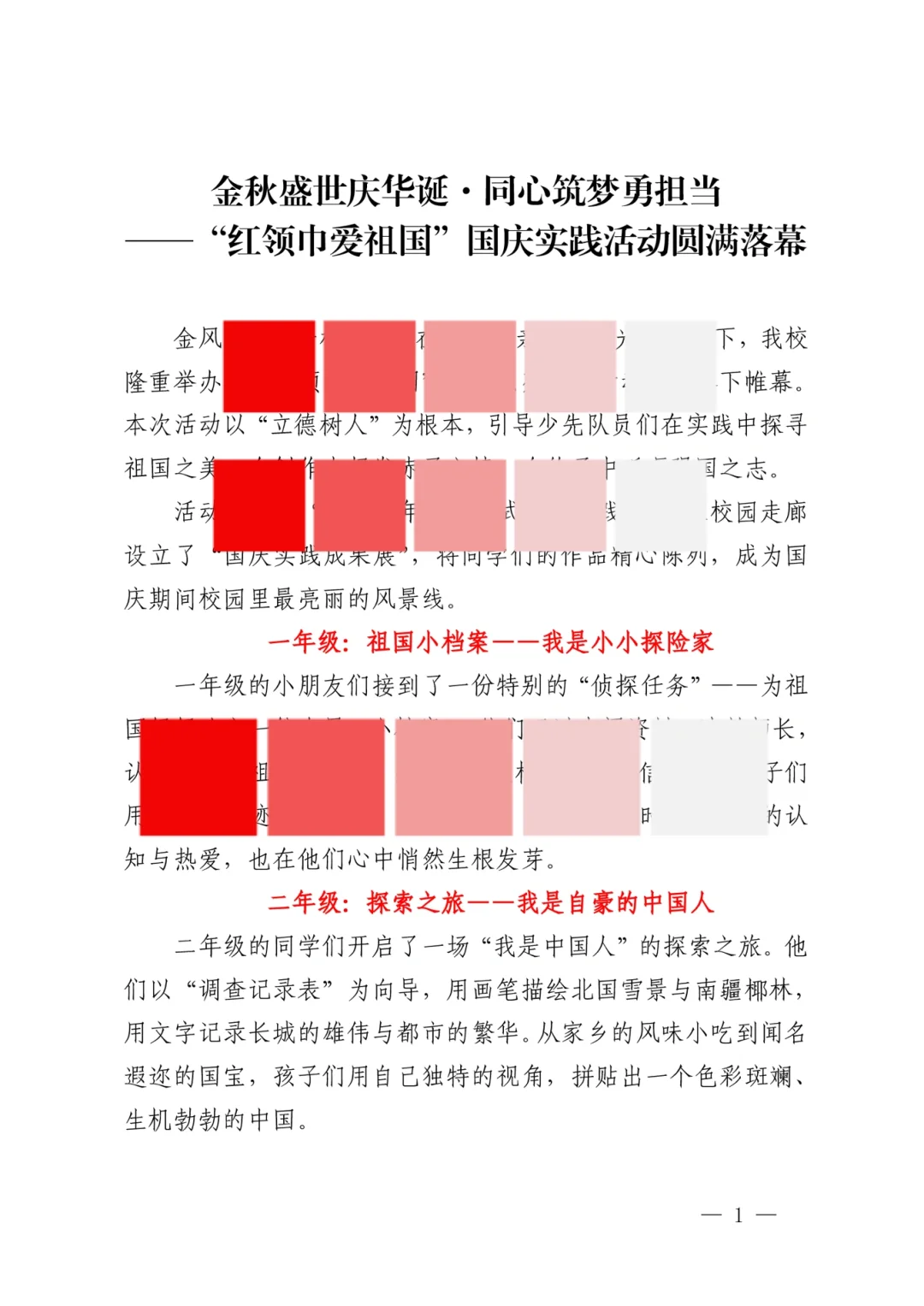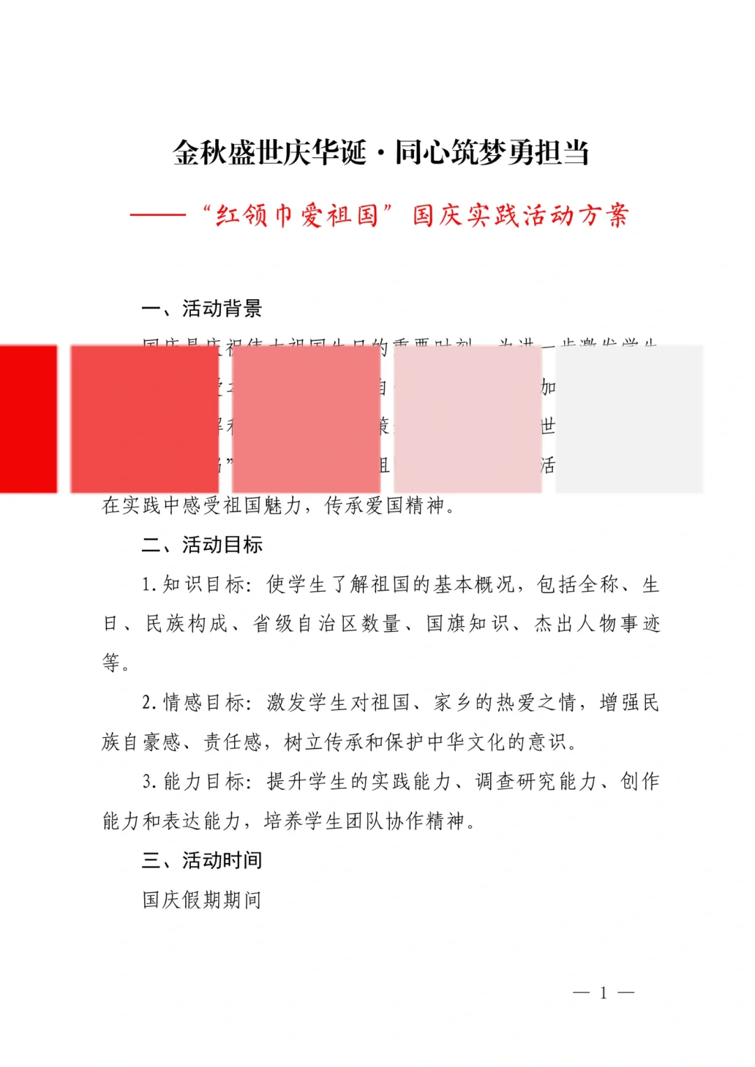 > 金秋盛世庆华诞·同心筑梦勇担当——“红领巾爱祖国”国庆实践作业单 含方案 总结