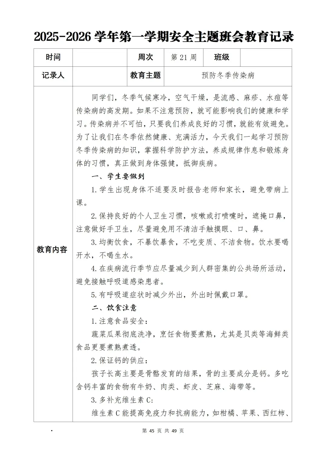> 911 2025-2026学年第一学期安全主题班会教育记录(1-22周)
