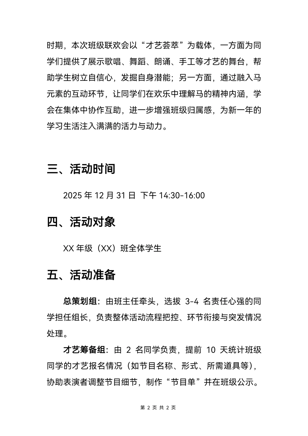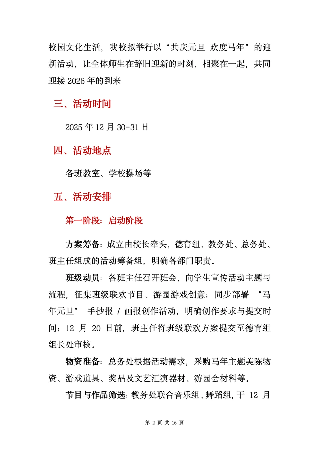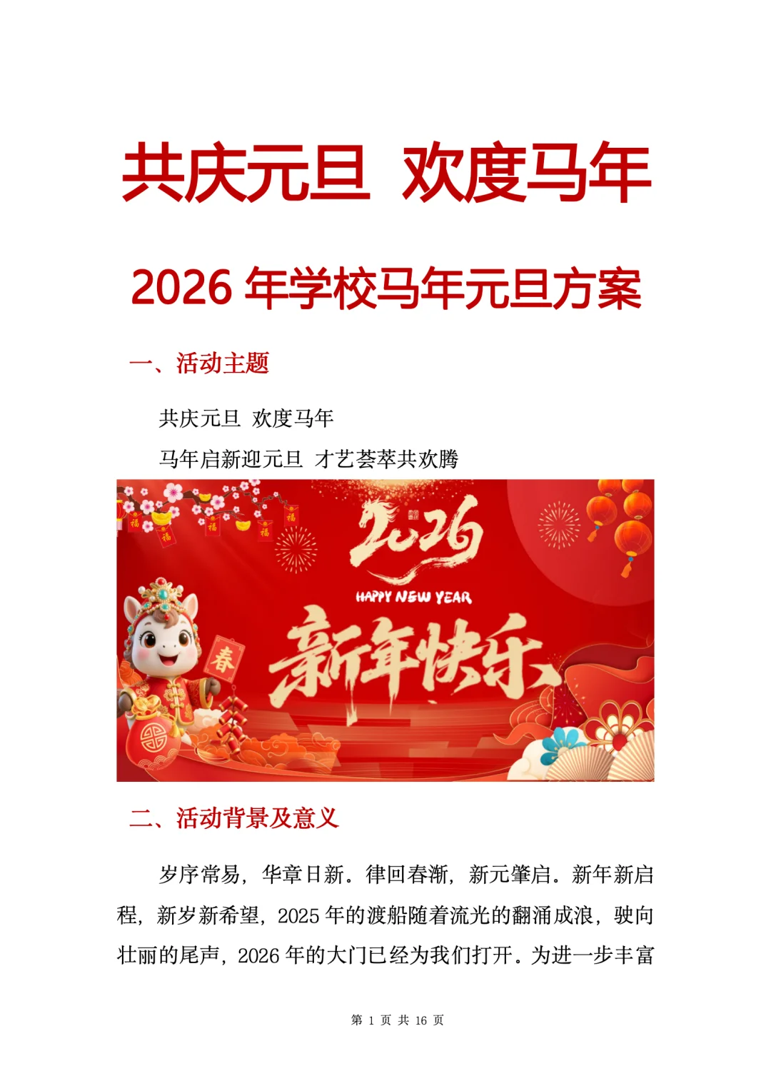 2026年元旦 马年元旦活动策划~含学校活动、班级活动材料