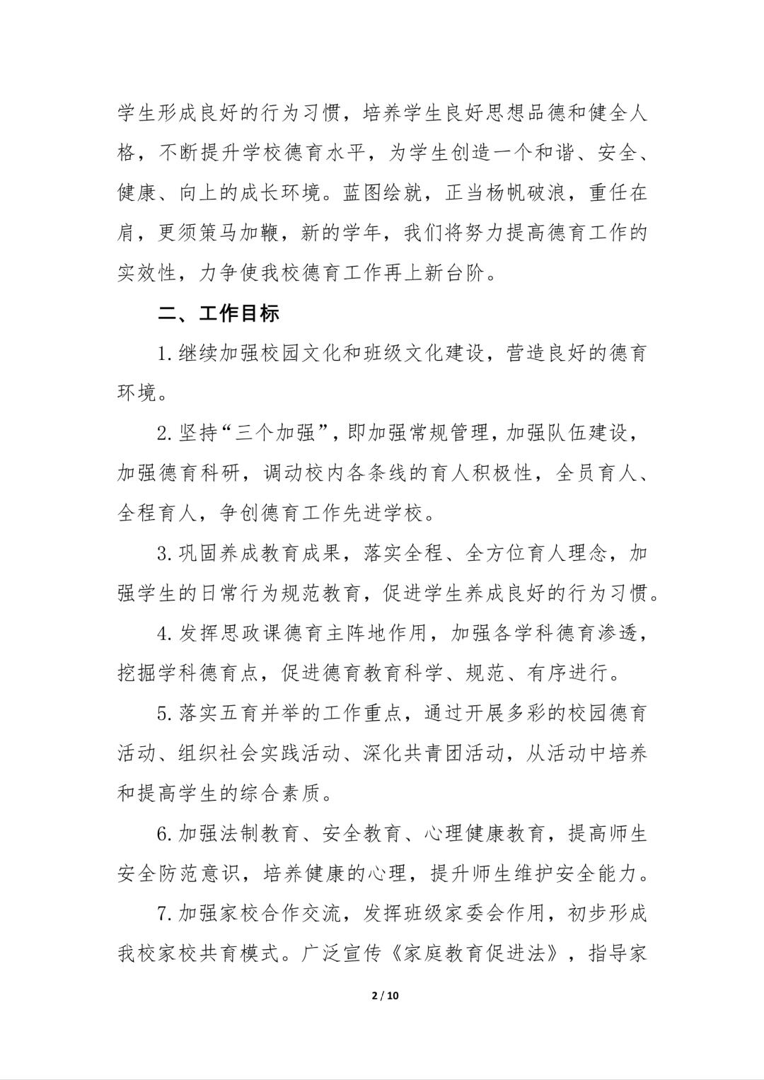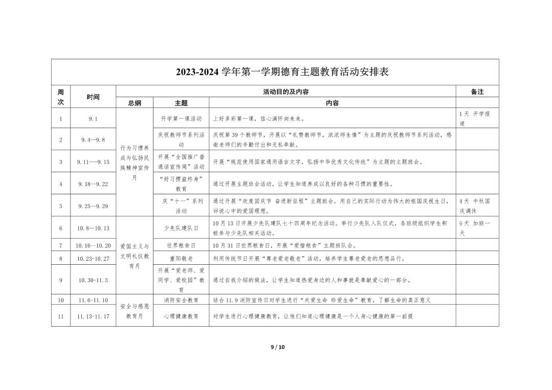 > 2023-2024学年度德育工作计划及德育活动安排表