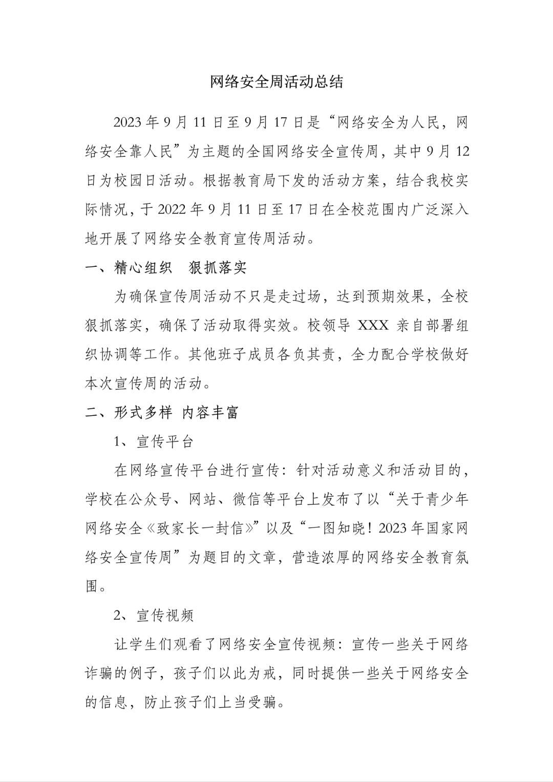 > 未知 2023年网络安全周活动方案、总结、完整方案