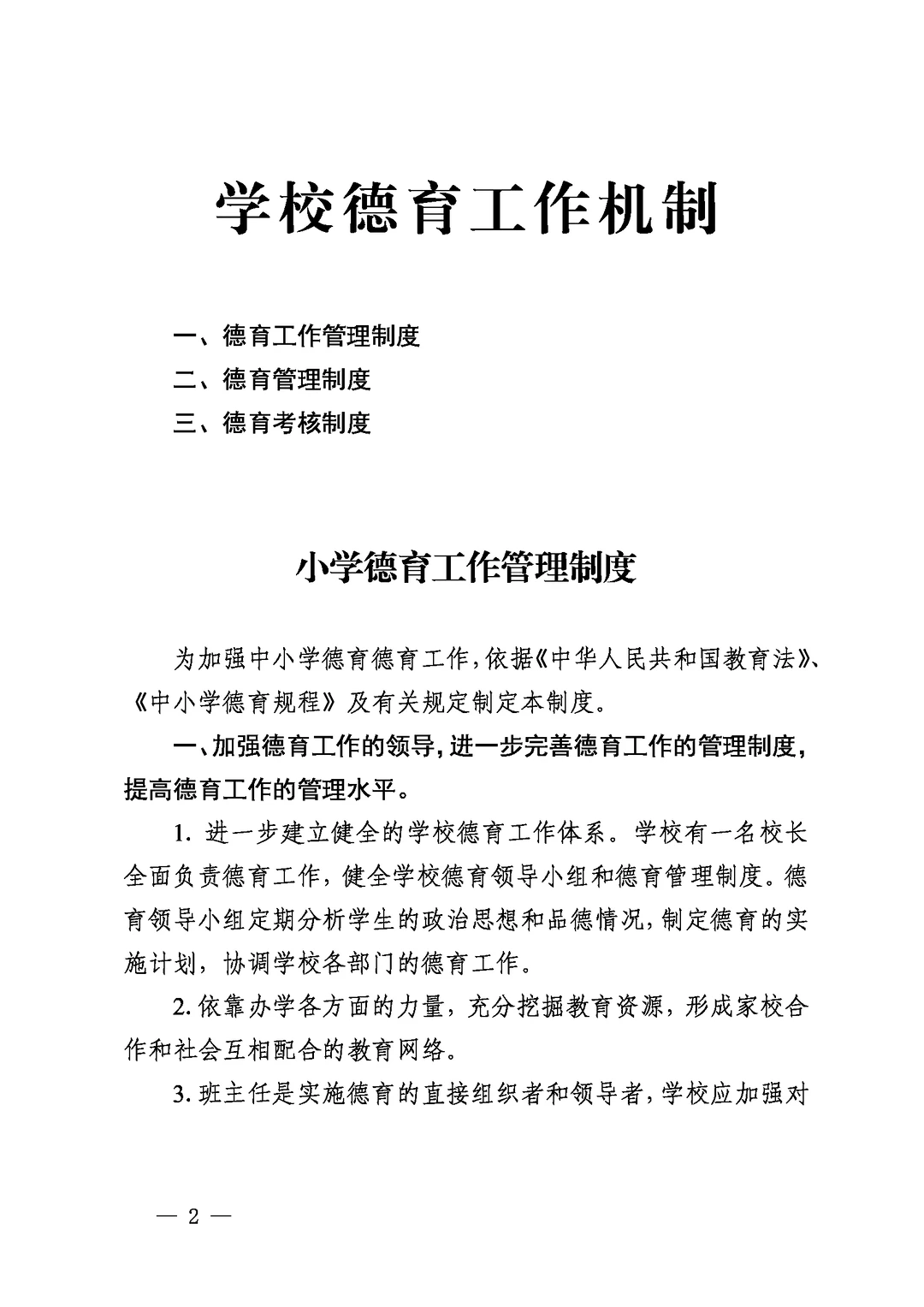 学校德育工作机制(德育工作管理制度、德育管理制度、德育考核制度)