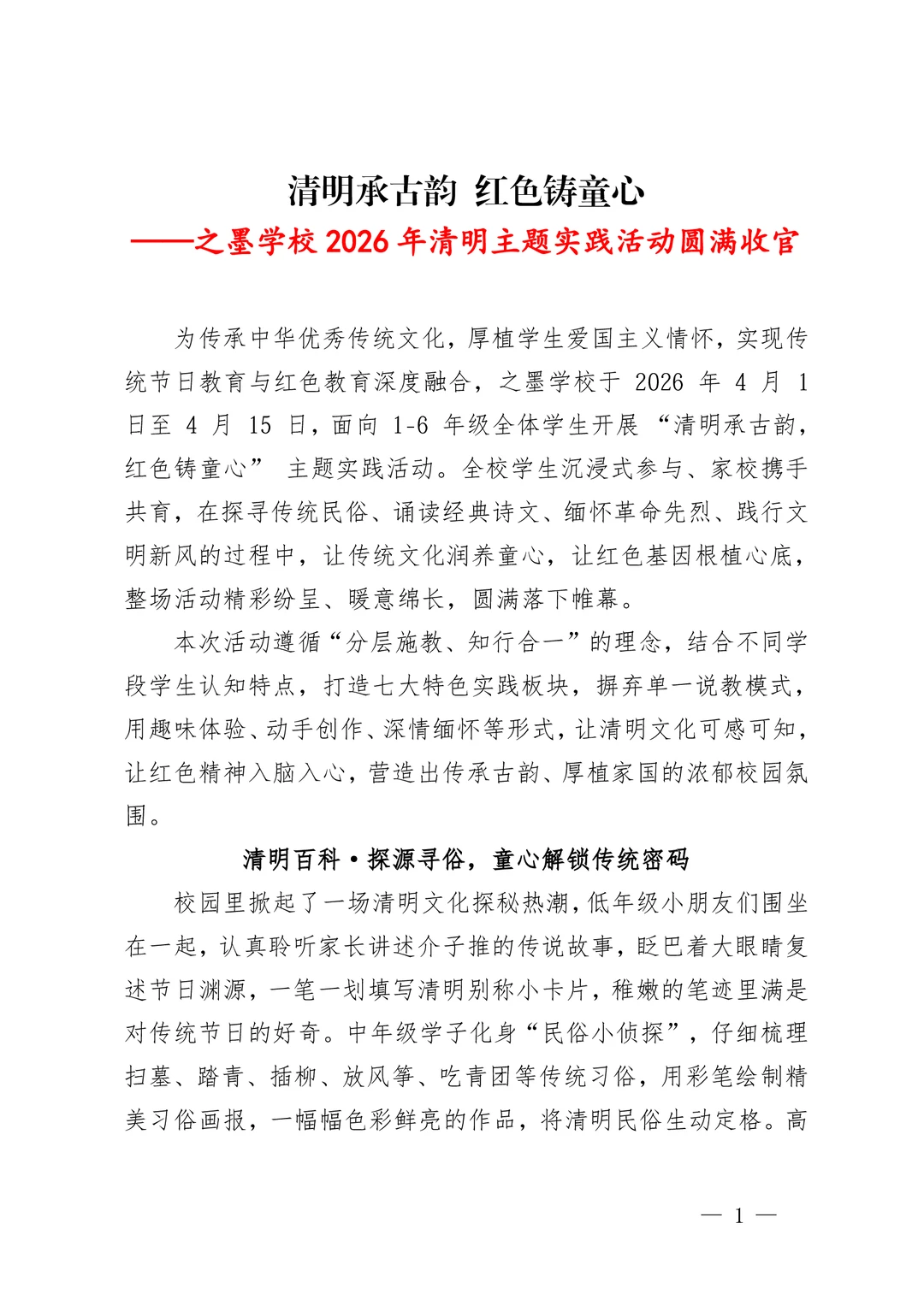 > 未知 2026年之墨学校“清明承古韵,红色铸童心”主题实践活动方案