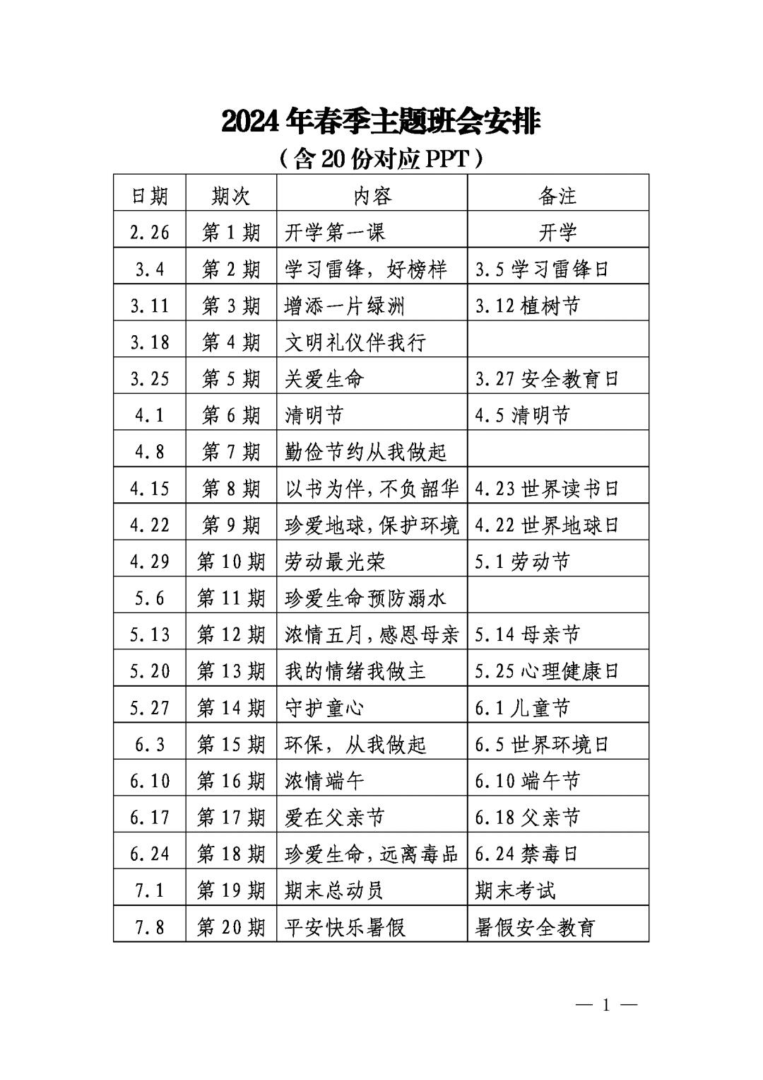 资源简介:2024年春季第二学期主题班会安排含PPT