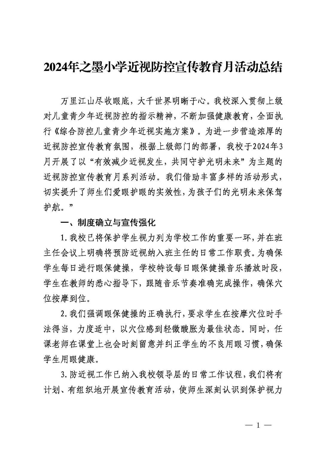 > 未知 2024年小学近视防控宣传教育月活动材料