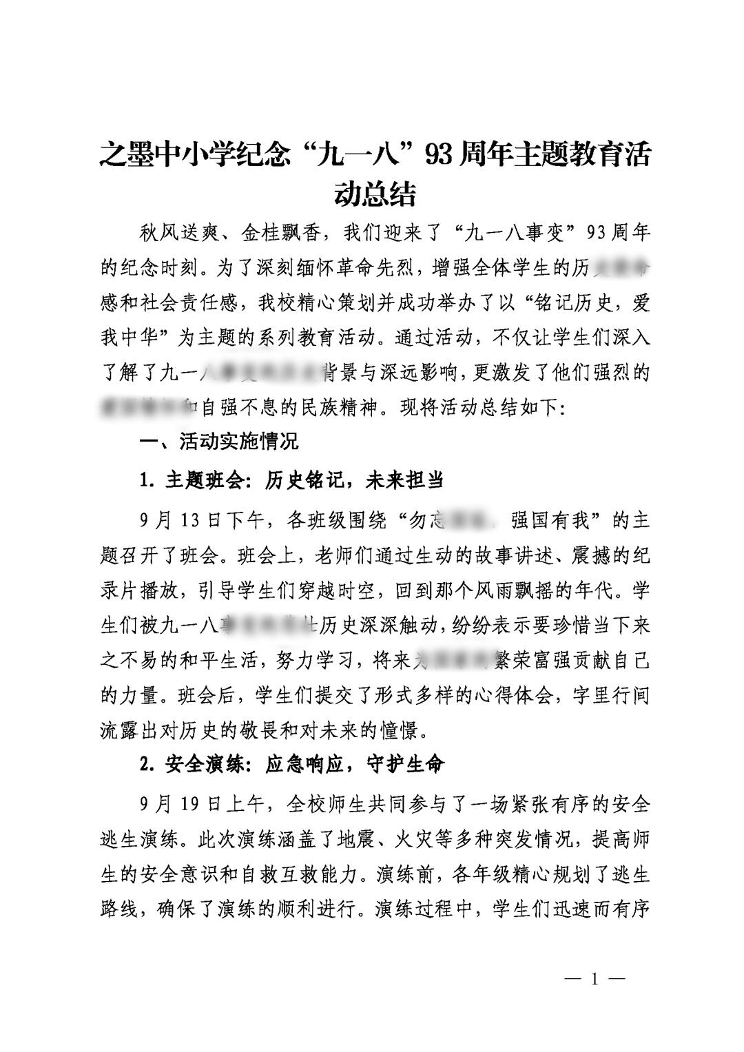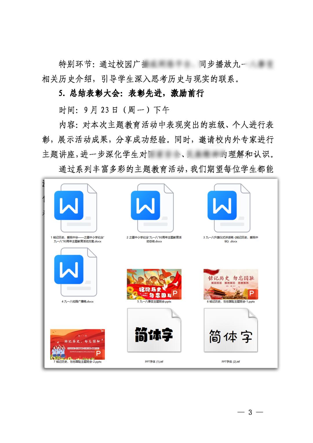 资源简介:纪念九一八93周年主题教育活动方案及总结