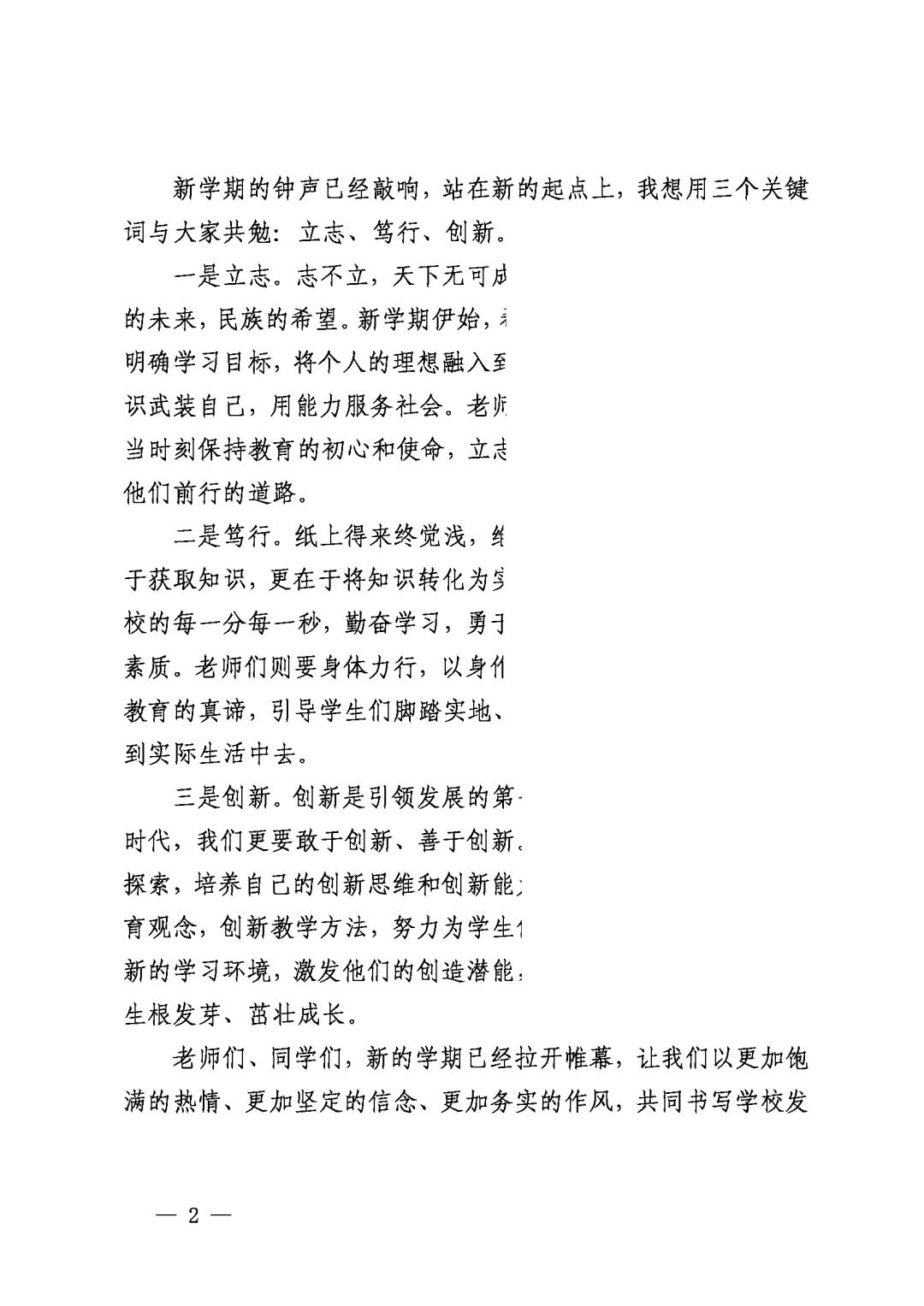 资源简介:2024年秋季开学典礼校长致词 校长发言稿