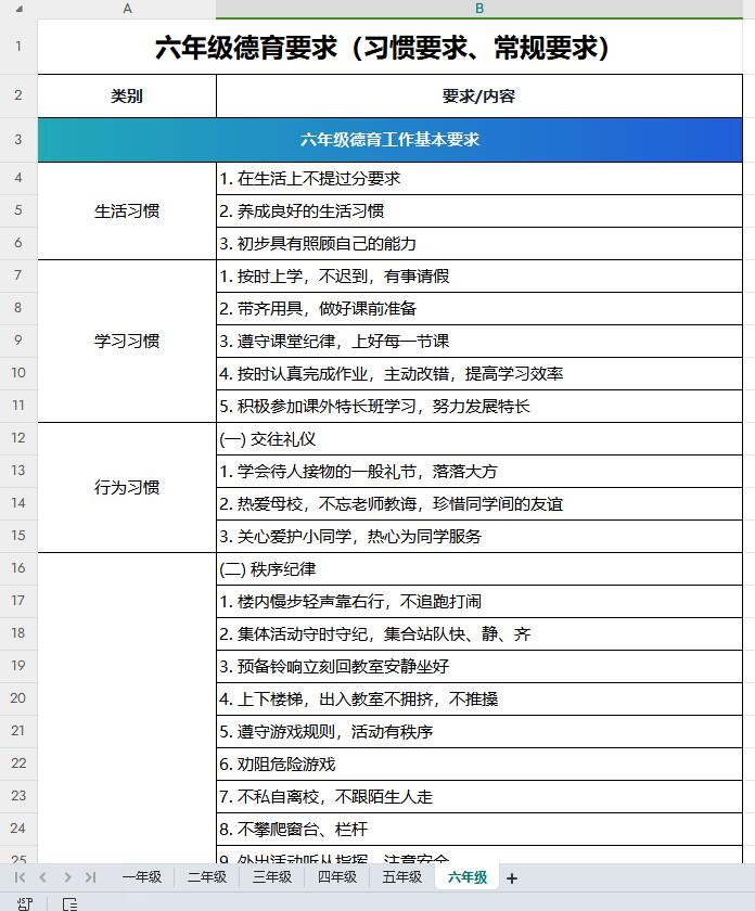 资源简介:小学分年级德育目标要求 习惯要求 常规要求