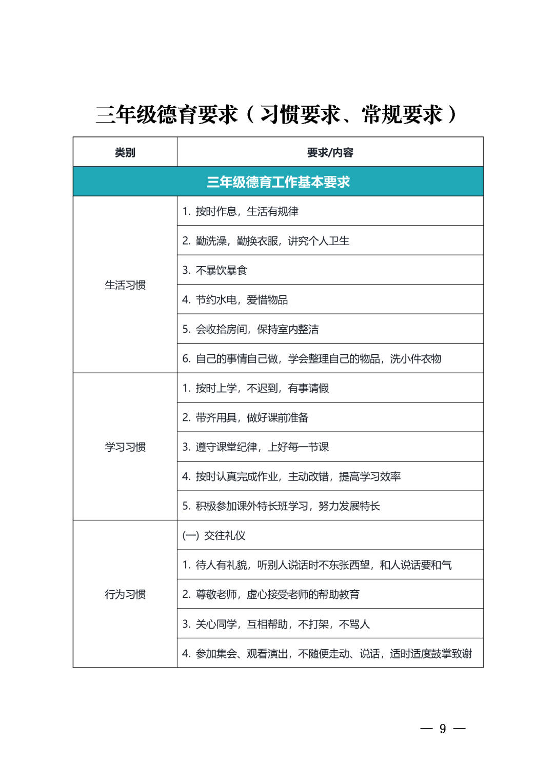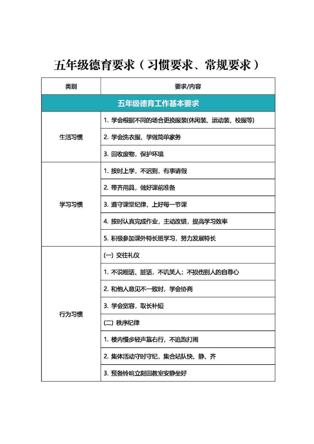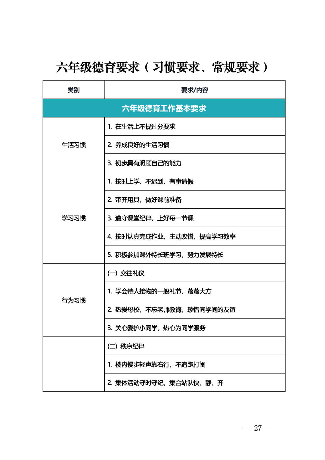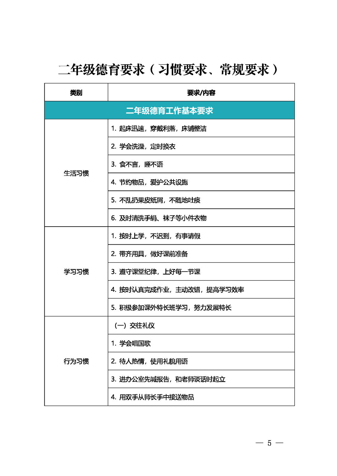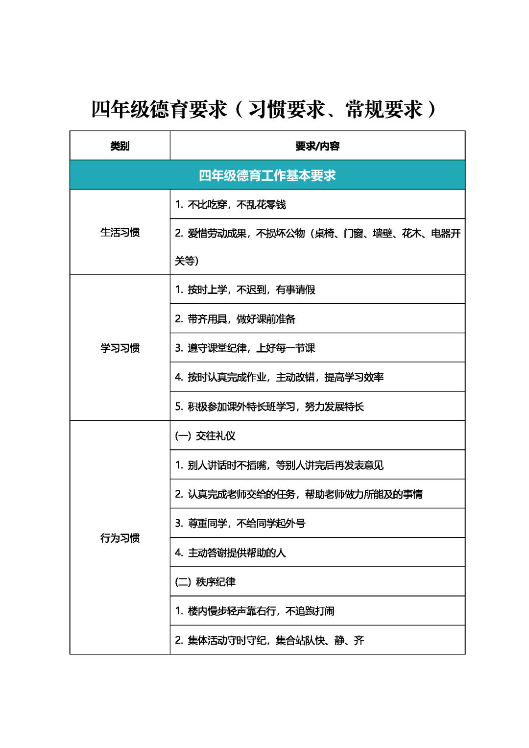 > 小学分年级德育目标要求 习惯要求 常规要求