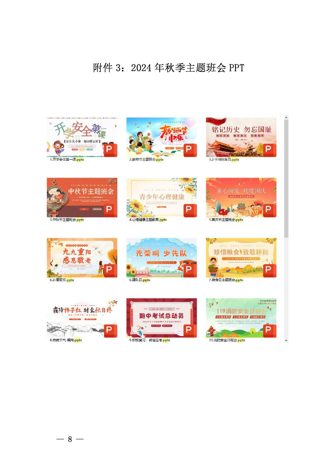 资源简介:2024年秋季主题班会实施方案含班会安排表
