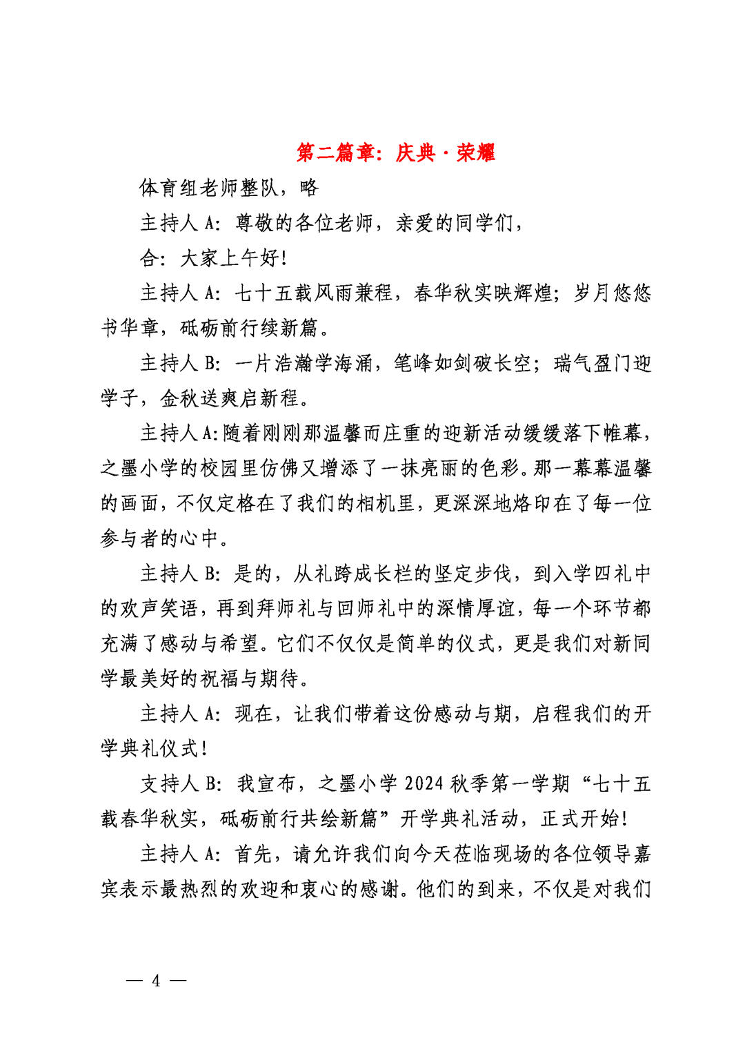 > 未知 2024年秋季开学典礼主持稿迎生活动主持稿