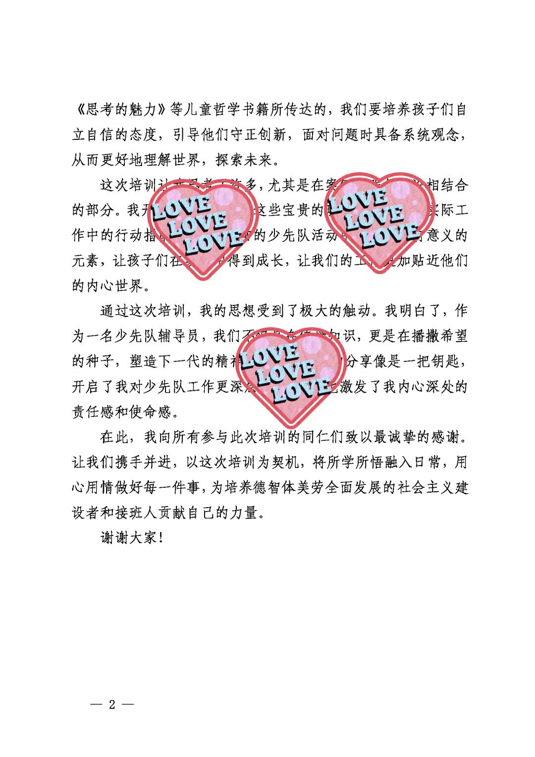 第2期少先队辅导员暑期培训学员代表发言稿