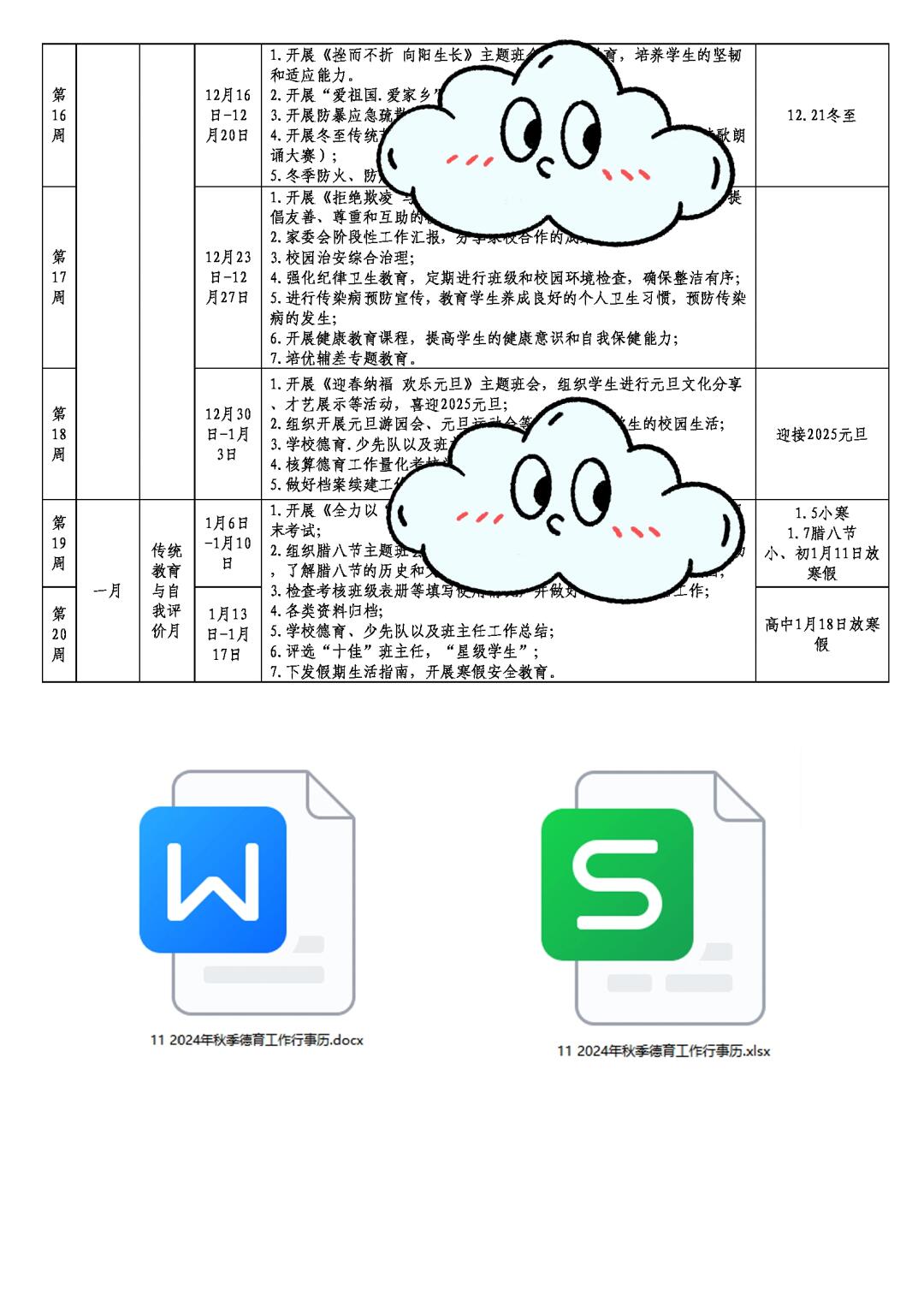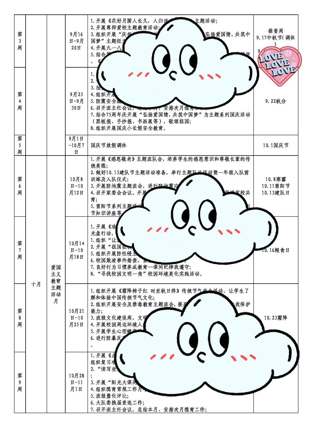 > 2024年秋季德育工作安排表 德育行事历她来啦