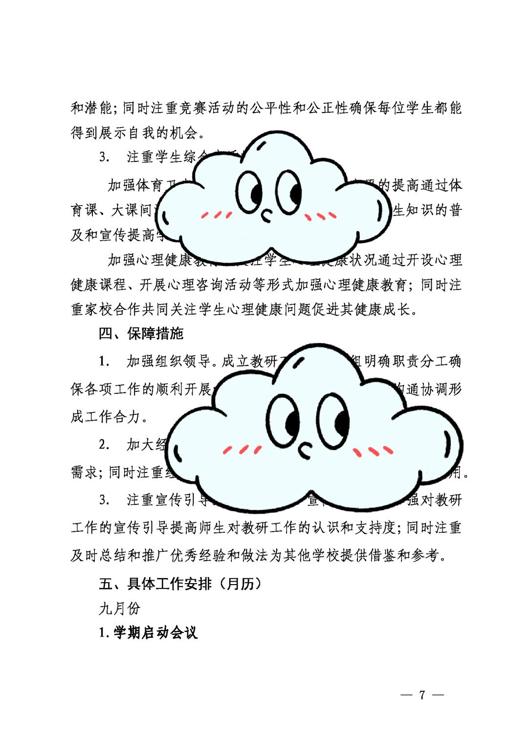 2024-2025学年第一学期教研工作计划含月历