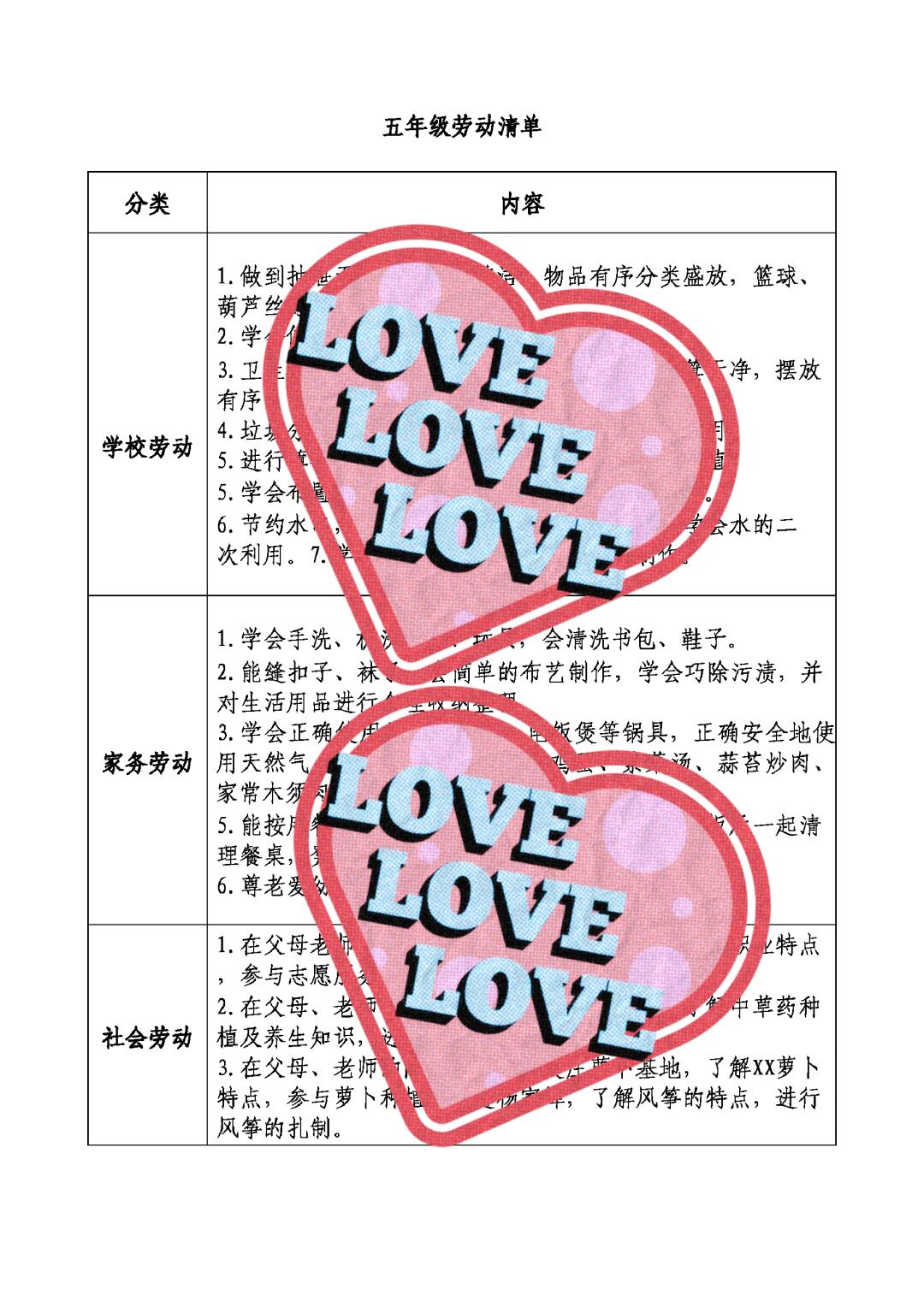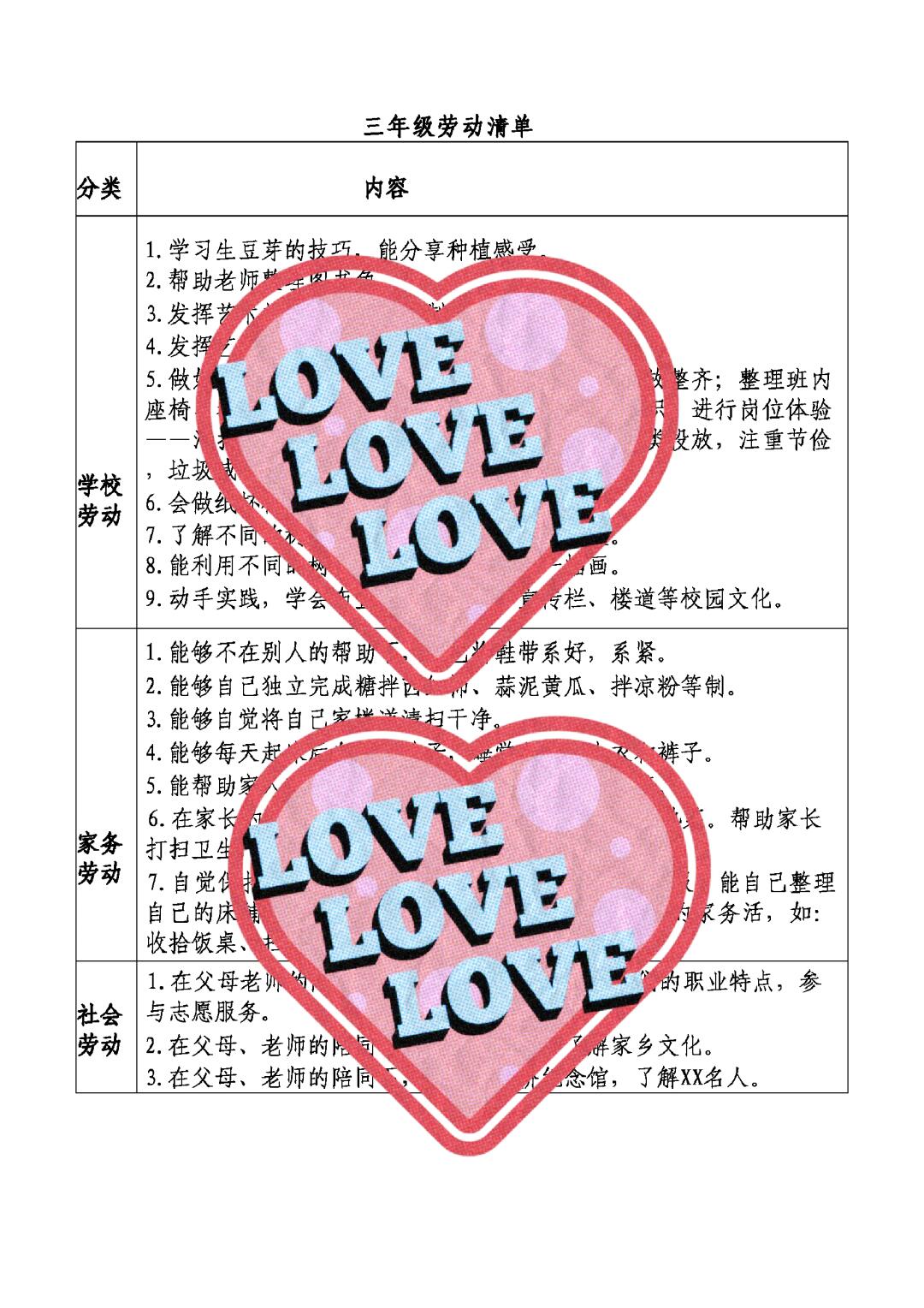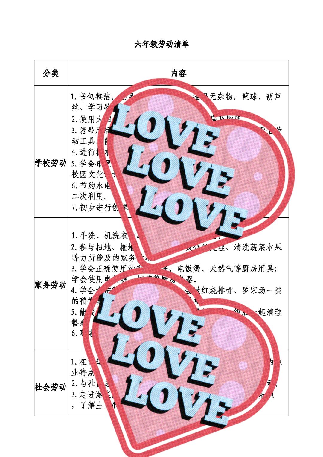 > 小学分年级分种类劳动任务清单