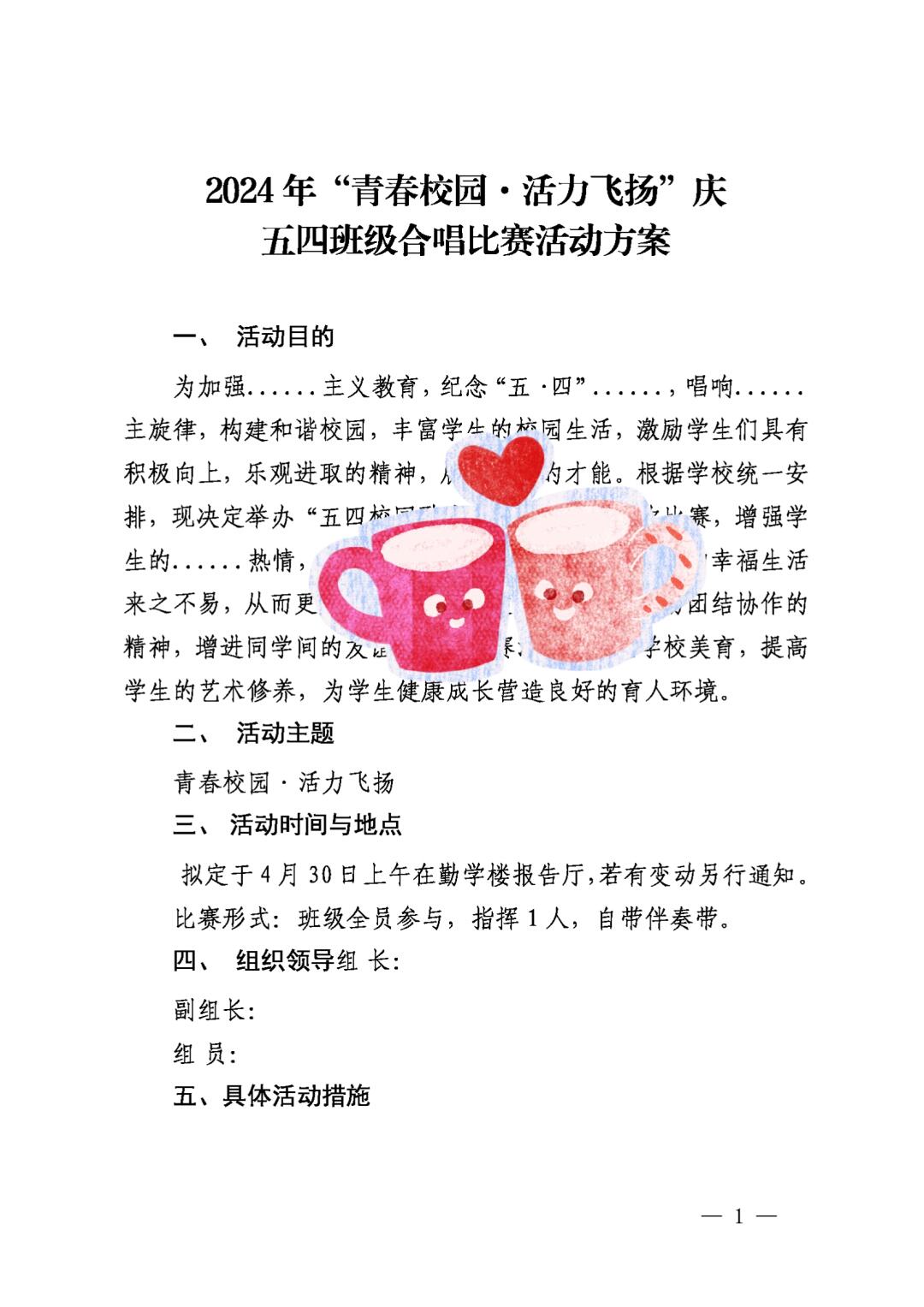 资源简介:五四青年节系列活动材料 五四合唱方案