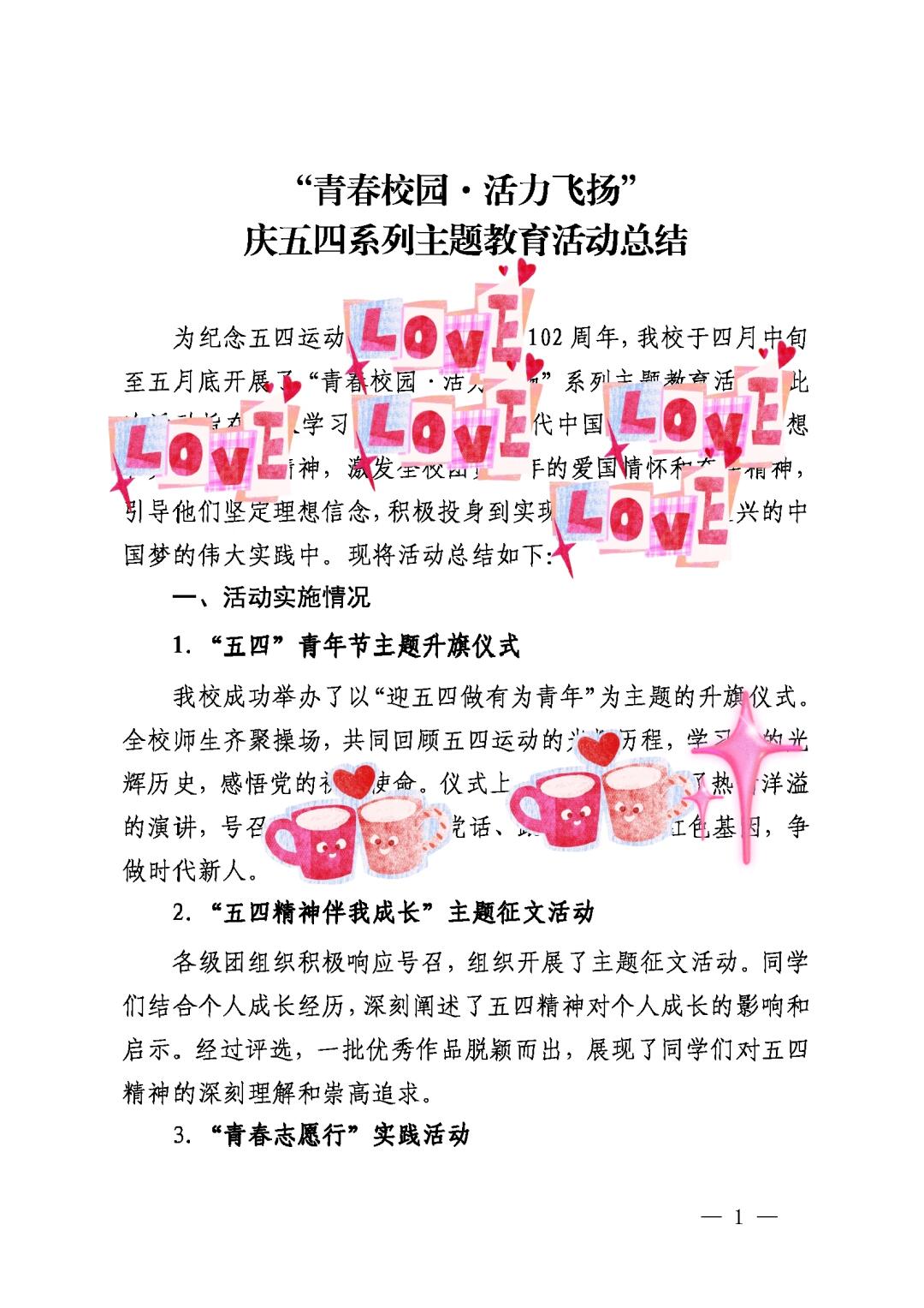 > 红五月庆五四青年节系列主题教育活动材料
