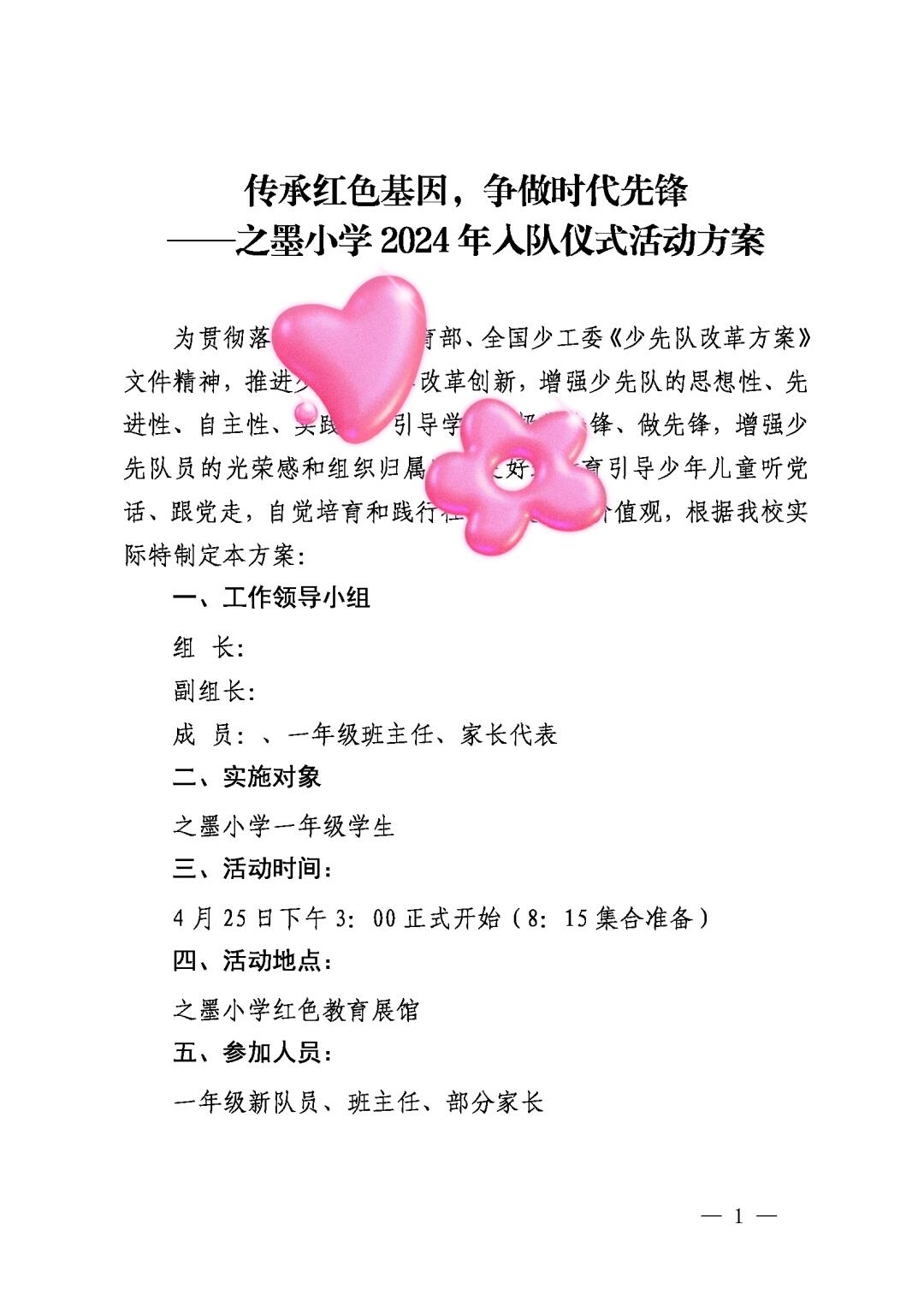 > 传承红色基因 争做时代先锋 2024年少先队入队仪式活动方案全套安排