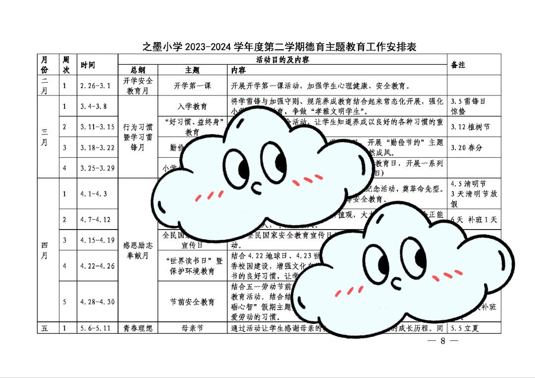 > 未知 2024年春季德育工作计划含主题教育安排表