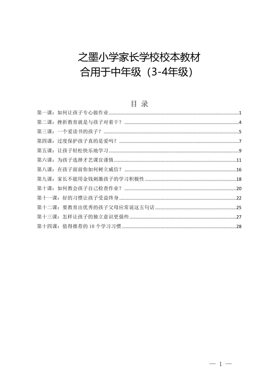 家长学校校本课程 家校共育校本课程