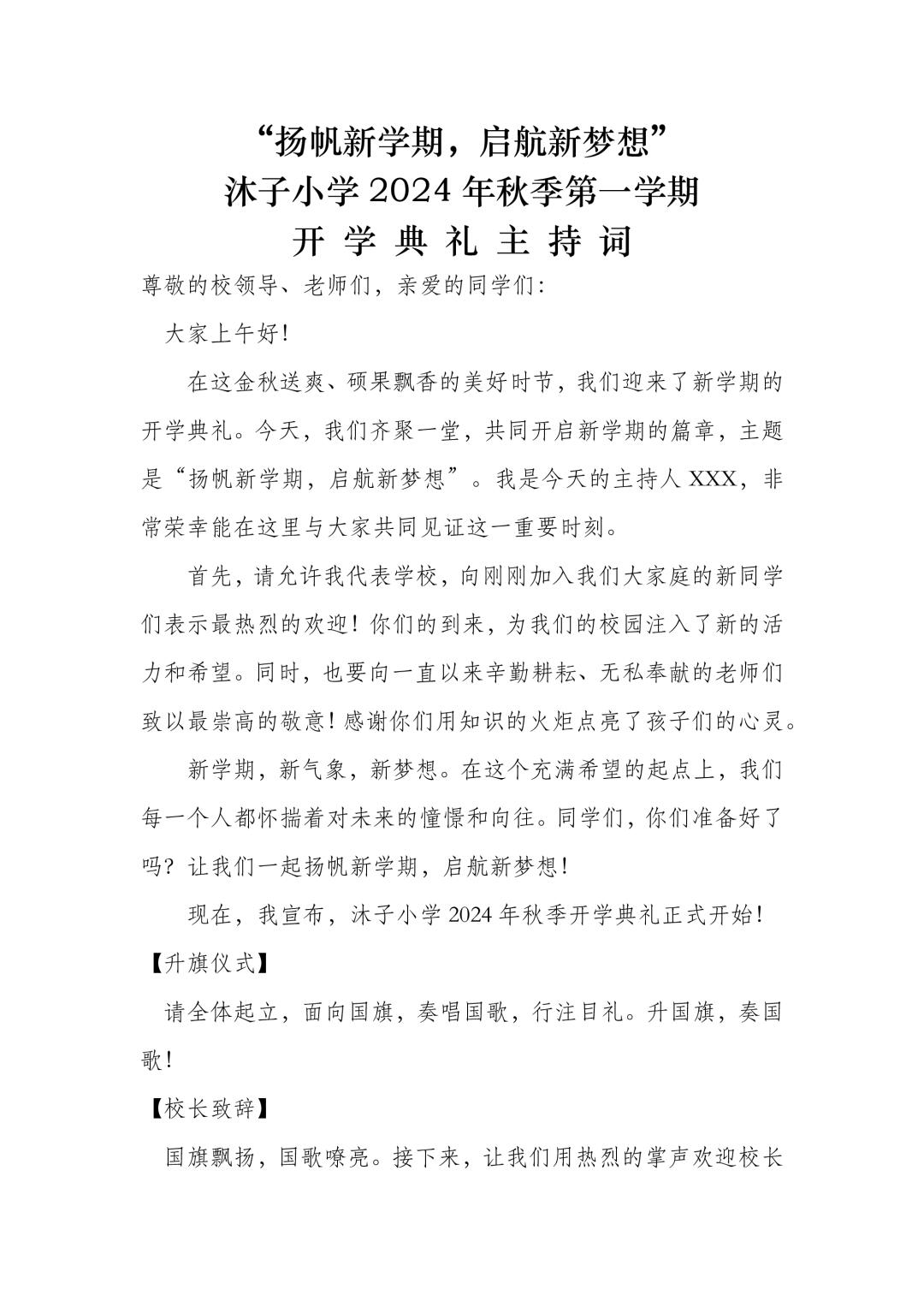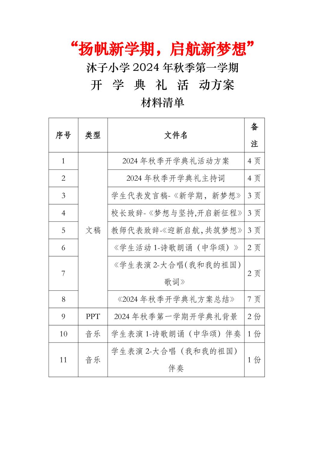 资源简介:2024-2025学年度秋季开学典礼活动方案