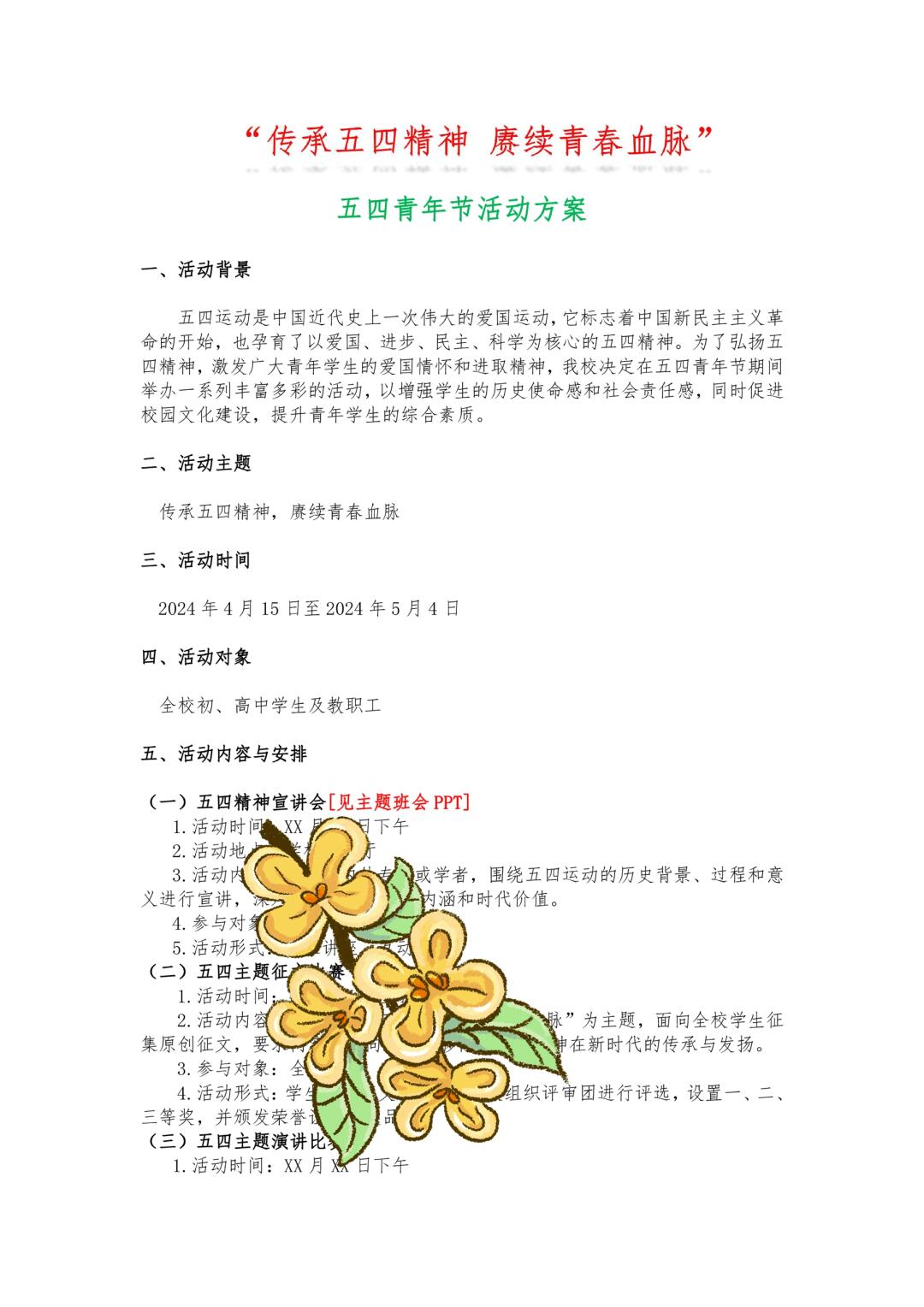 资源简介:这份五四青年节活动方案,你一定要收好