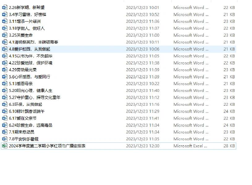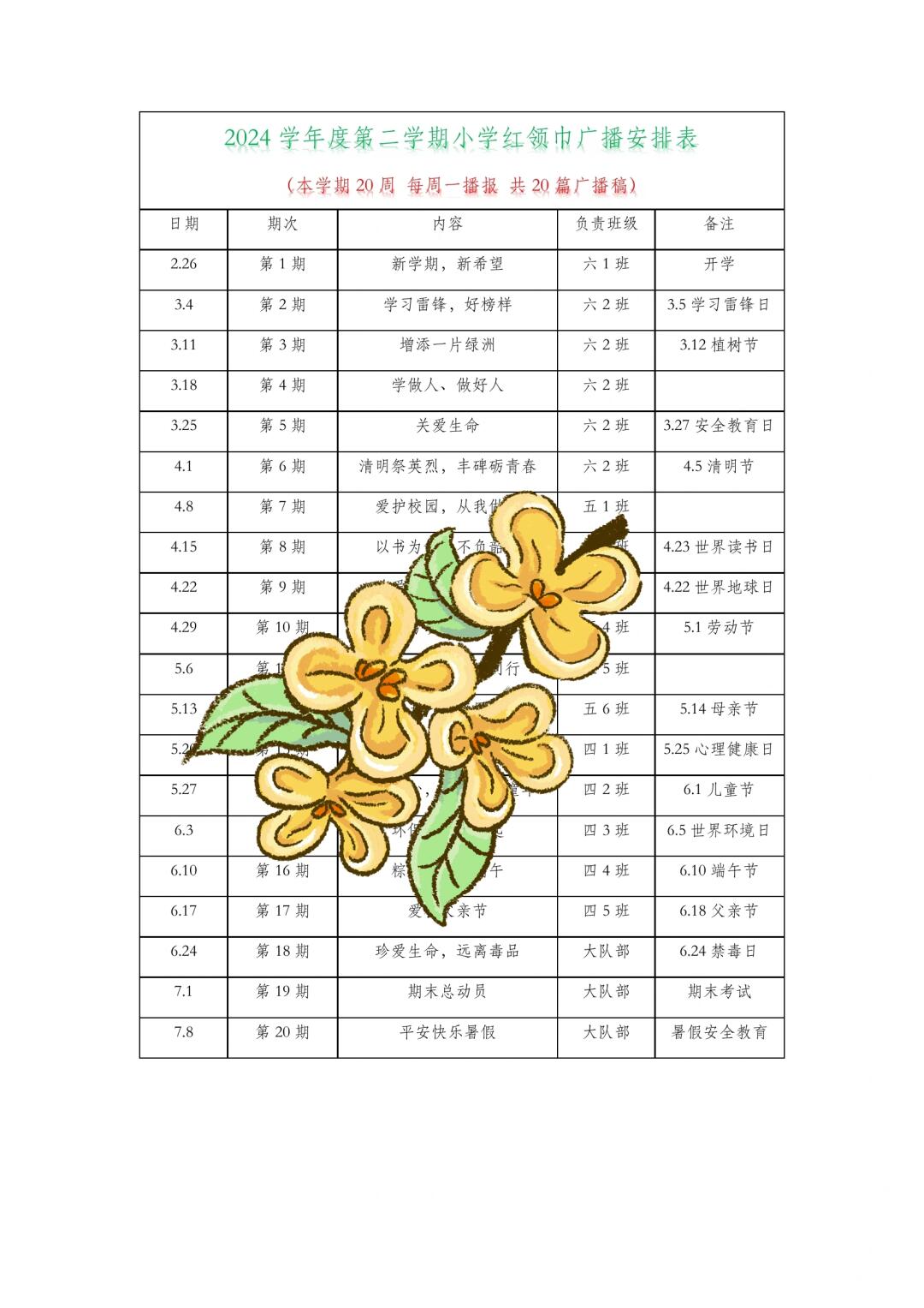 资源简介:2024年春季第二学期红领巾广播站播报安排