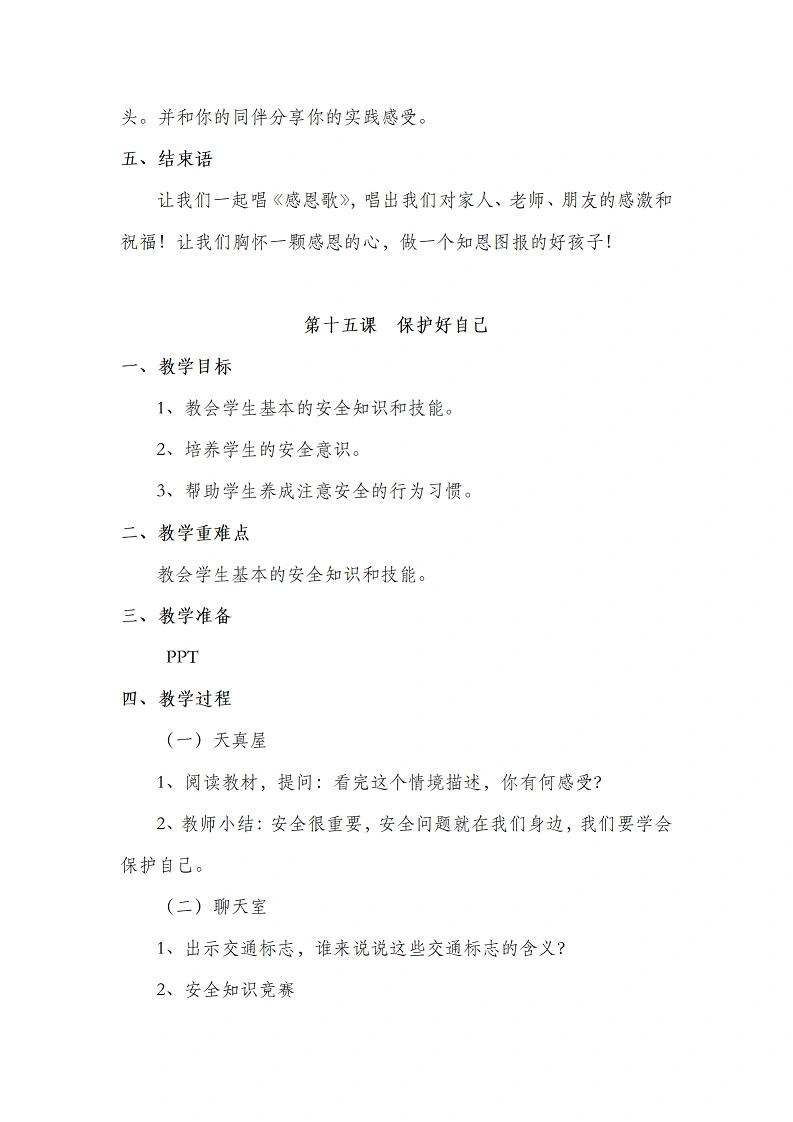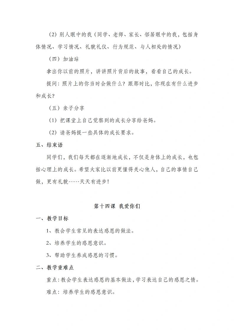 资源简介:小学一年级心理健康课程教案