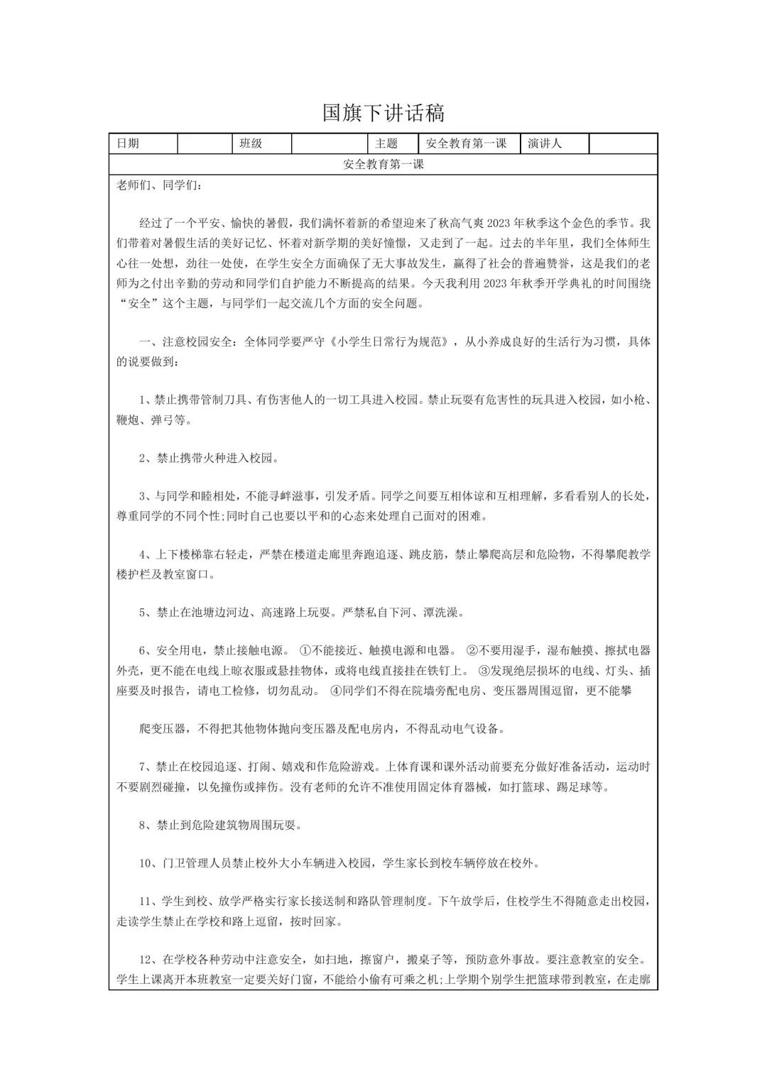 > 未知 2023-2024学年第一学期国旗下讲话安排
