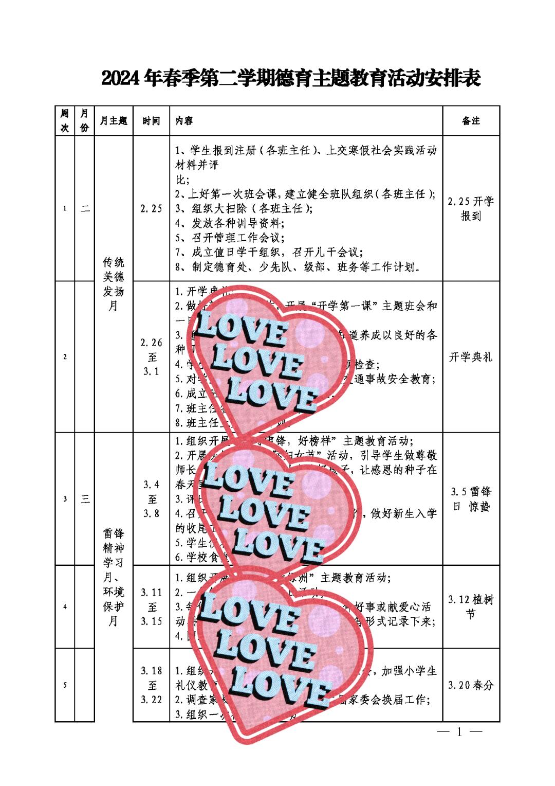 > 未知 2024年春季德育工作安排表 德育行事历