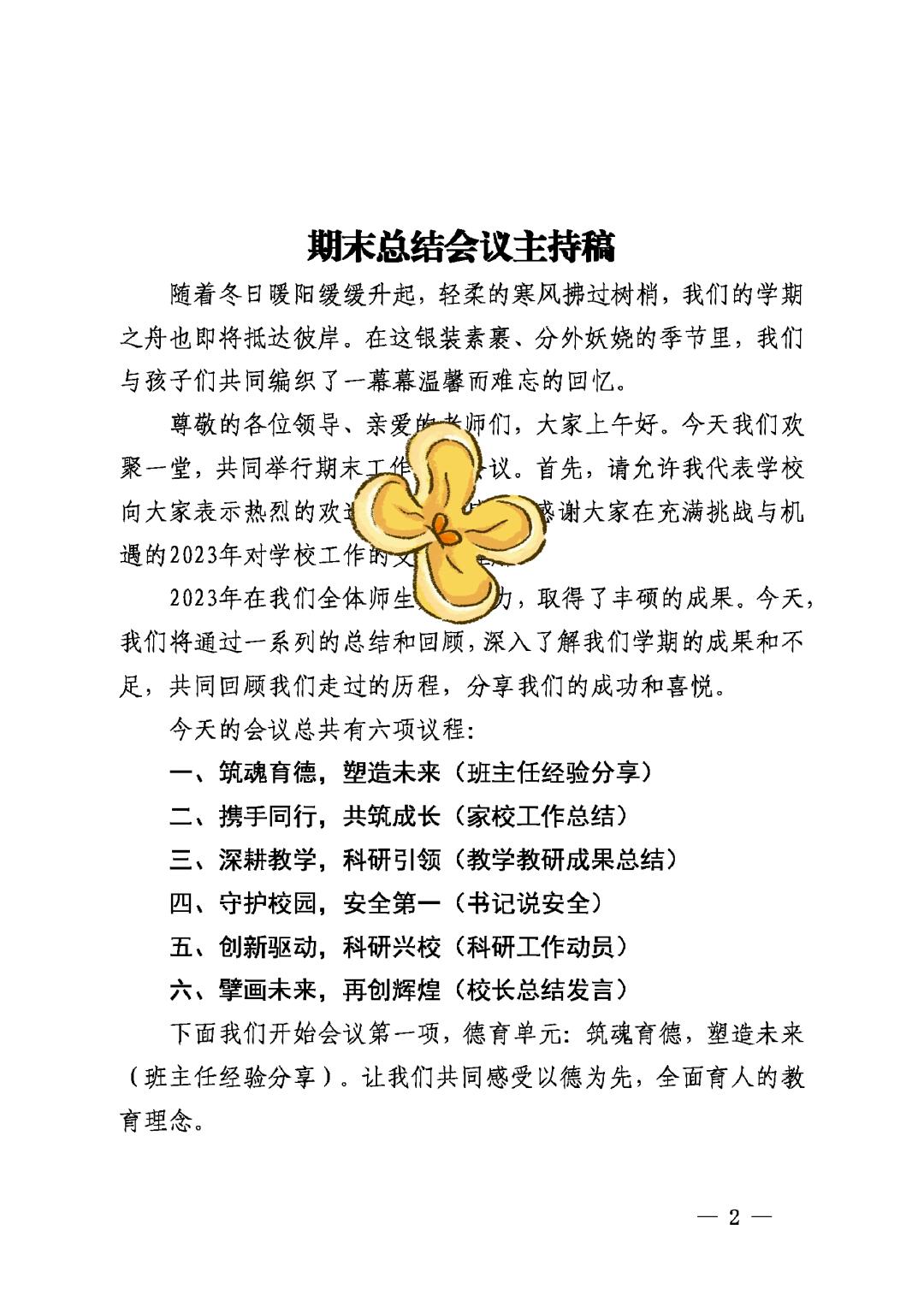 > 未知 2023年学校期末总结会主持稿 含配套PPT